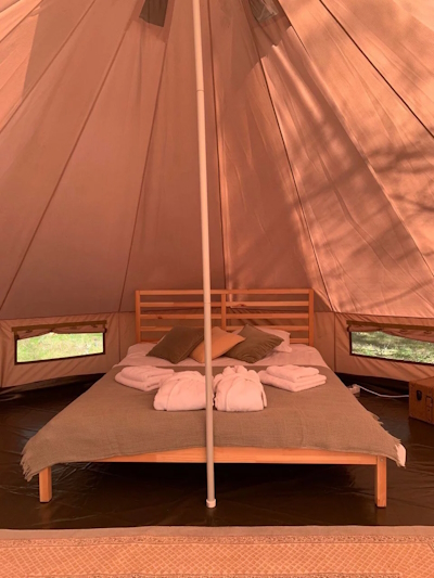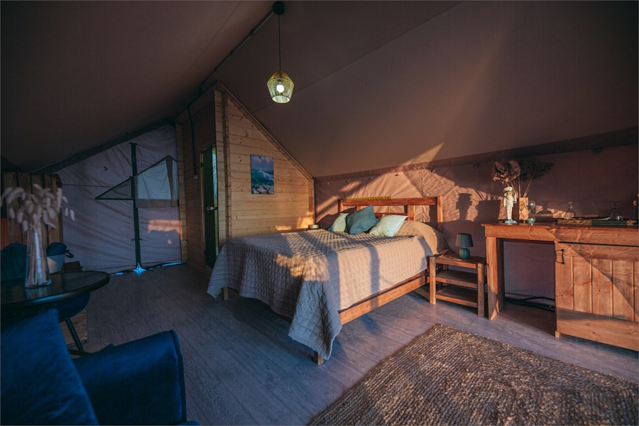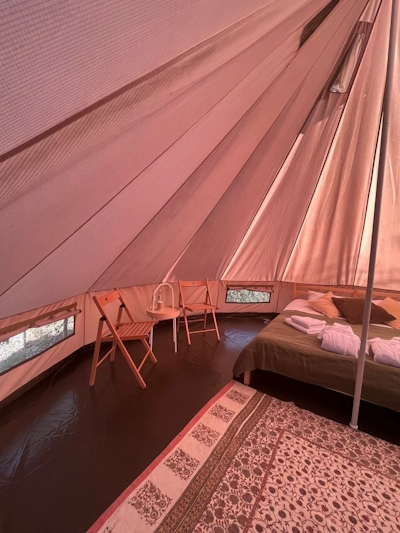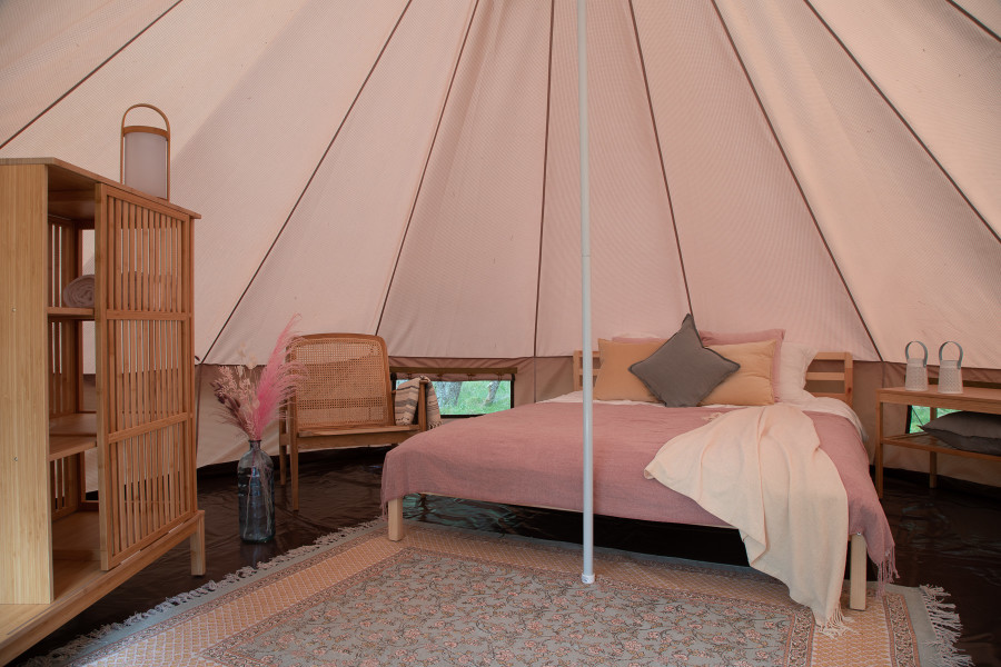 За 14 900 рублей предлагают забронировать «Rõsa — шатёр стандарт на море» (в стоимость включён завтрак). «Это белл тент площадью 19,5 м². Индивидуальные душ и туалет расположены в отдельном санитарном блоке. Общая сауна. Своя смотровая площадка и спуск к морю. Шезлонги на морском пляже», — говорится в описании. Максимально возможное размещение — 2 взрослых + 1 ребенок (от 3 до 16 лет) на дополнительной кровати. Она обойдётся в 2 500 рублей в день.