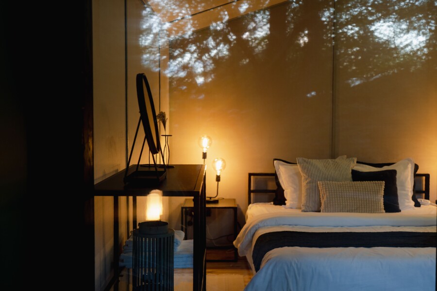 Каждое бунгало имеет собственную террасу с навесом, креслами и журнальным столиком. Туалеты и душевые, как сообщается, расположены поблизости. В числе предлагаемых развлечений — наблюдение за животными, кинотеатр под открытым небом, прогулки на сапах, уроки сёрфинга, тренировки по йоге и пилатесу, массаж, спортивные и настольные игры, прокат велосипедов, кальян и «лесная библиотека».