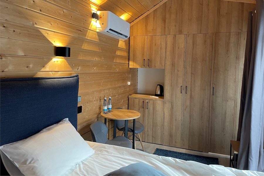 Из дополнительных услуг предлагают кинопоказы в сферическом шатре, прогулочные маршруты, аренду велосипедов, настольные игры и чай из самовара. За 15 400 (цена указана с учётом скидки 12%) можно забронировать однокомнатный жилой модуль с кондиционером площадью 15 м², вмещающий до двух человек. В их распоряжении будут в том числе уличный стол и терраса.