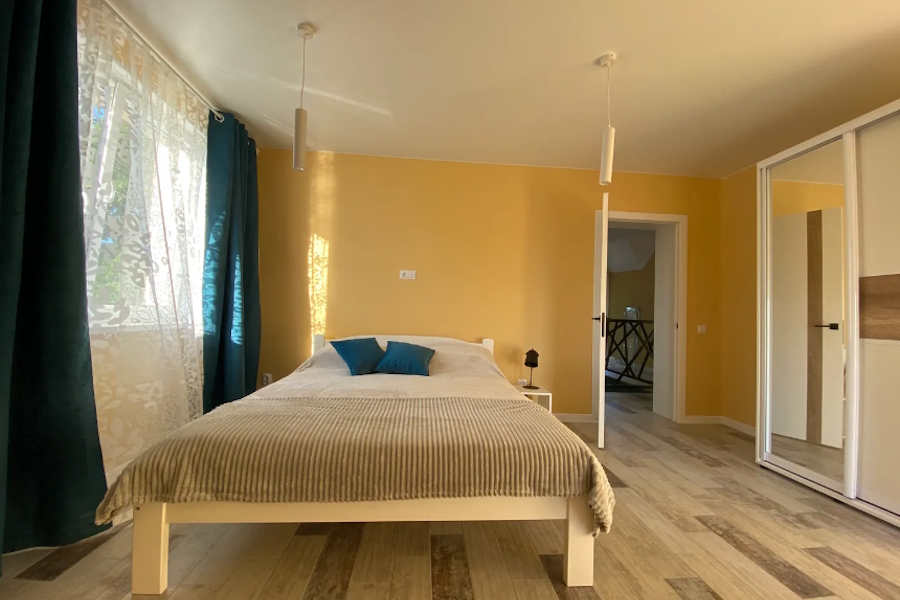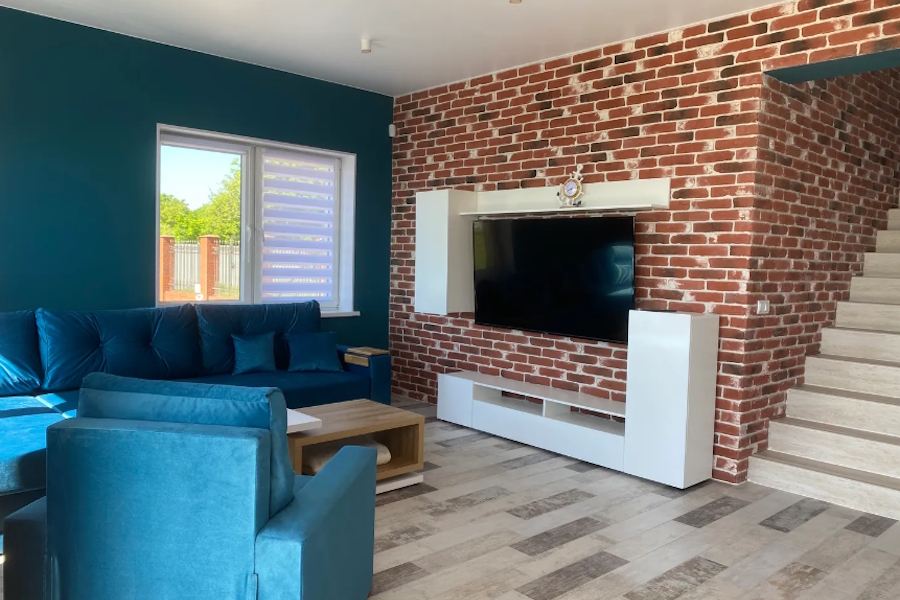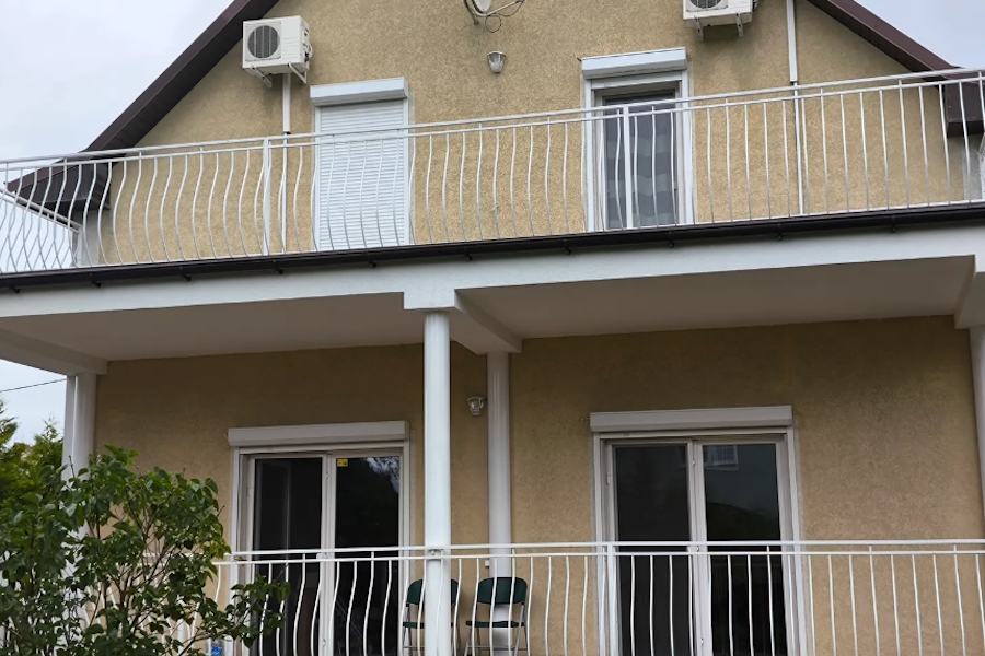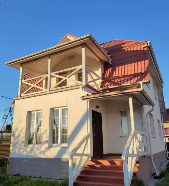 Двухэтажный дом площадью 80 м² находится на ул. Озёрной и вмещает до шести гостей. В их распоряжении будут две двуспальные кровати и диван-кровать. Минимальный срок размещения — одни сутки. Возможно проживание с детьми любого возраста и — по согласованию с хозяином — с питомцами. Также можно договориться о том, чтобы провести в доме мероприятие или вечеринку. Курение под запретом. Из основных удобств перечислены постельное бельё и микроволновка. До моря обещают 640 метров. Отзывов у объекта пока нет.