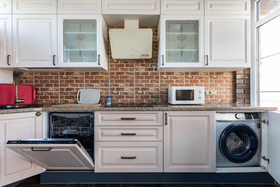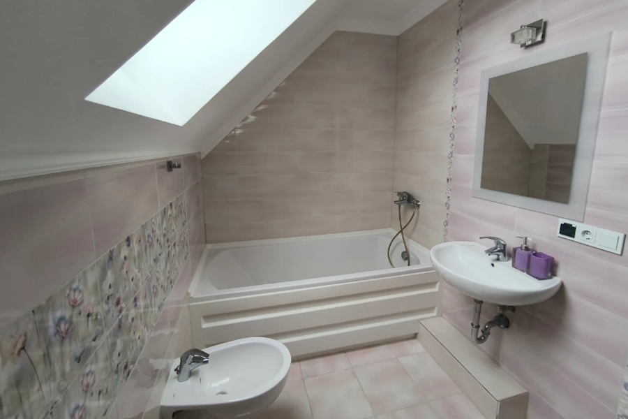 Сразу десять гостей смогут разместиться в доме площадью 170 м² на ул. Береговой. В распоряжении арендаторов два санузла, четыре спальни с шестью кроватями (три двуспальных, две односпальных и детская кровать-манеж), оборудованная кухня и терраса. Владельцы предупреждают об отсутствии кондиционера. На территории дома большая парковка, зона барбекю с мангалом и шесть шезлонгов.