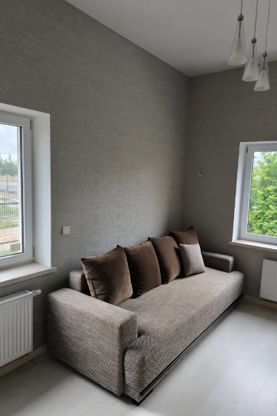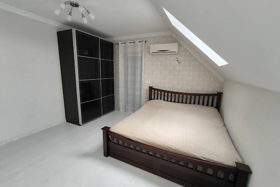 Двухэтажный дом площадью 145 м² расположен в частном секторе на ул. Малиновой и вмещает до восьми гостей. В их распоряжении будут три спальни с тремя кроватями и диваном. Дополнительное место оговаривается и оплачивается дополнительно — 1000 рублей в сутки. На территории находятся веранда площадью 30 м² с зоной барбекю, мангал-коптильня, стол и стулья. Гостям предоставляется парковочная зона на два автомобиля.