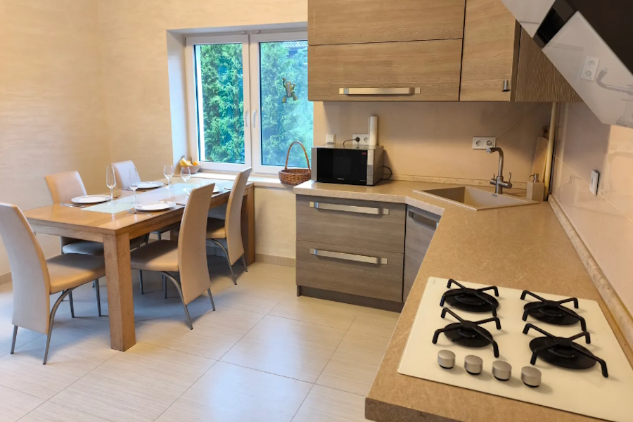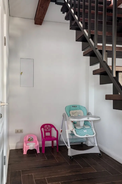 По запросу предоставляются детская кроватка, стульчик и горшок. При этом проживание разрешено детям от пяти лет. Есть ряд требований и к родителям: возраст старше 23 лет, отсутствие животных, готовность предоставить паспорт при заселении, не курить в доме и не устраивать вечеринки. До моря и Синявинского озера 300 метров. В единственном отзыве гостья отметила отзывчивость хозяйки.
