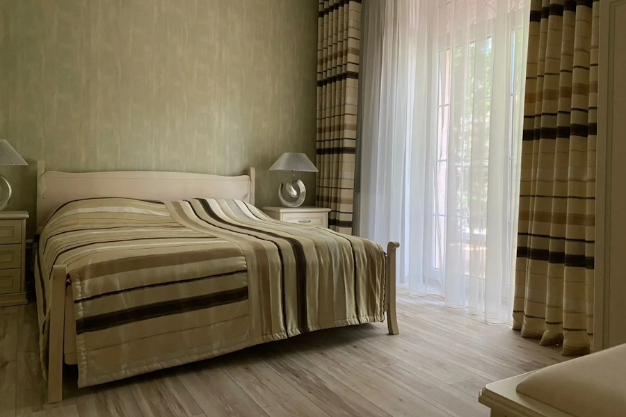 Минимальный срок проживания — три дня. Возможно размещение с детьми любого возраста. Вечеринки, курение и питомцы под запретом. До моря — 600 метров.