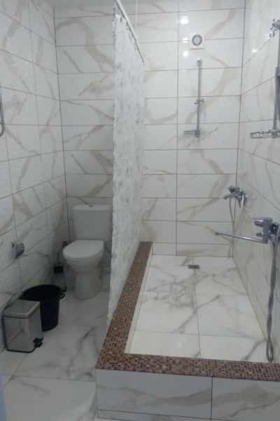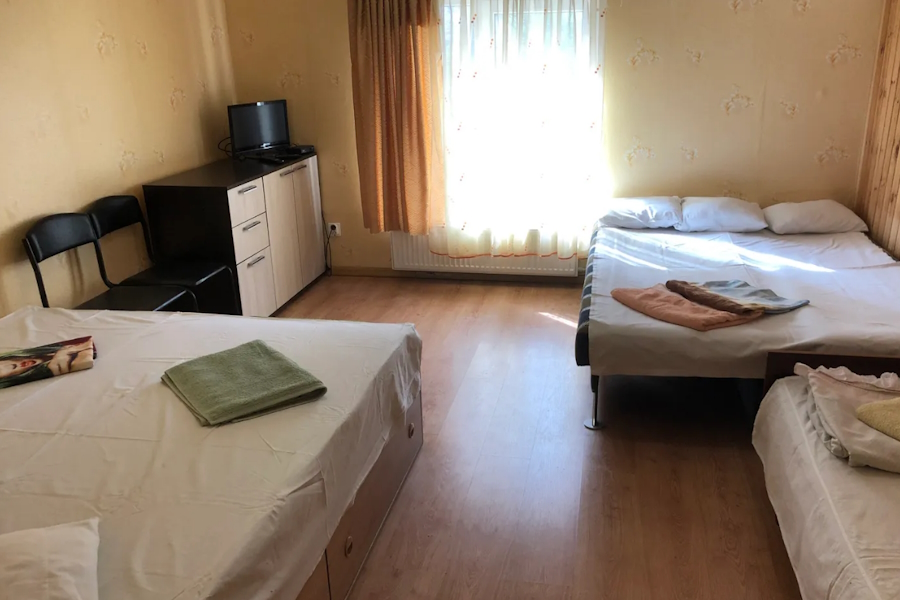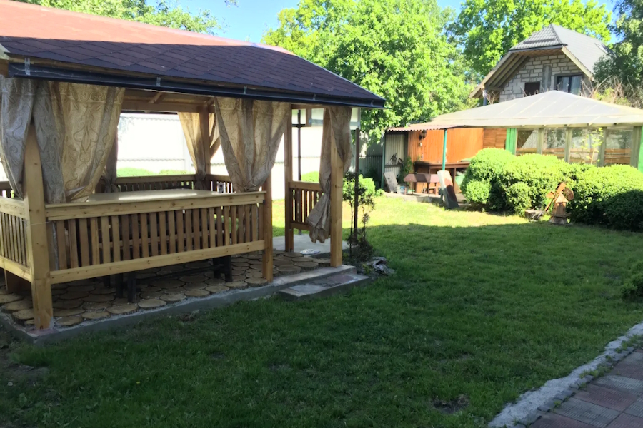 Двухэтажная дача площадью 300 м² расположена на ул. Дачной. По словам автора объявления, сдаётся часть дома с изолированным входом. Здесь смогут разместиться до восьми гостей. Дополнительные спальные места предоставляются за отдельную плату. В распоряжении арендаторов будут парковка, баня на дровах, бассейн, терраса, уличная кухня, зона барбекю, печка на дровах с решёткой, казан, тандыр, лобное место и батут.