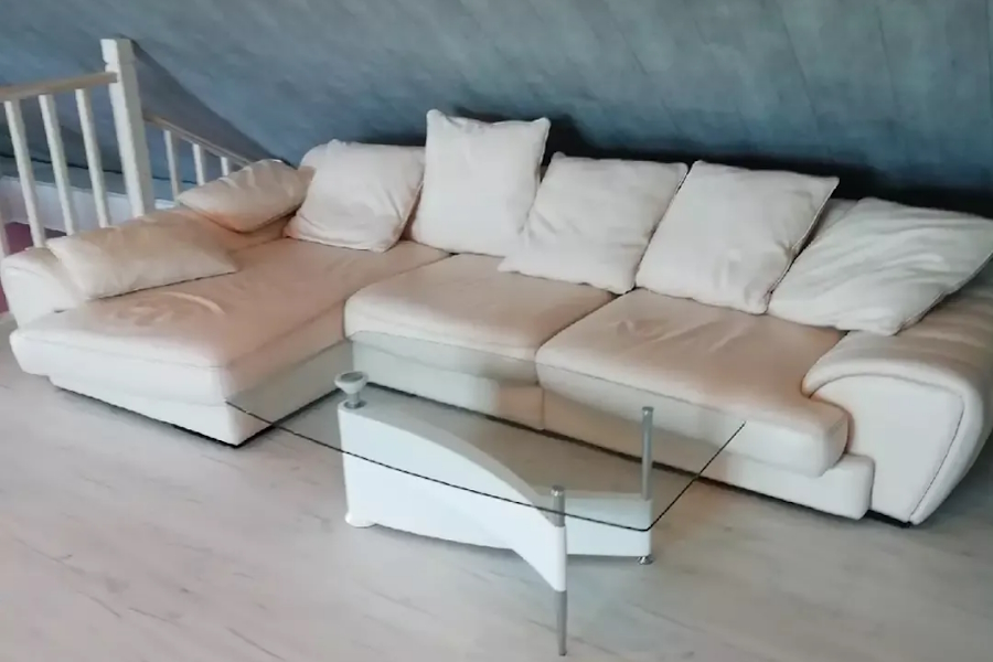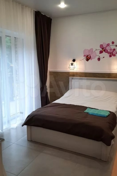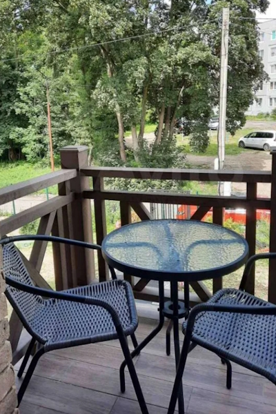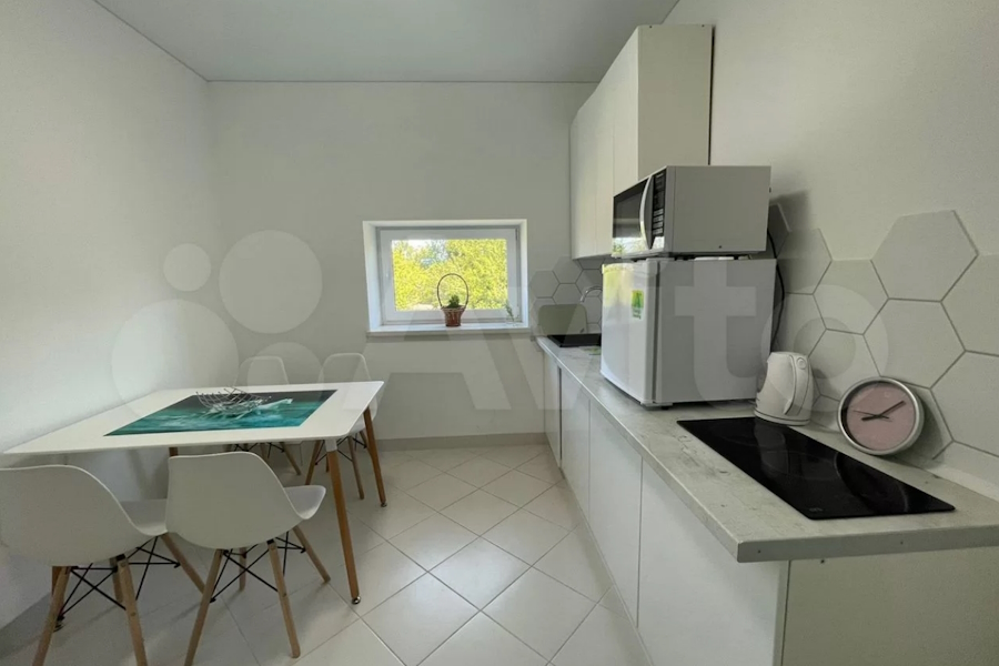 Двухэтажный дом с террасой площадью 120 м² находится на ул.Сенявина и может вместить до 16 гостей. В их распоряжении восемь комнат с санузлами и встроенными кухнями. Стиральная машина — в общем доступе. На территории находятся зоны отдыха и барбекю, а также парковочное место.