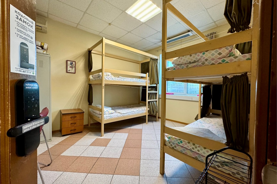 Место в общем пятиместном номере для мужчин и женщин площадью 14 м² обойдётся в 850 рублей за ночь.