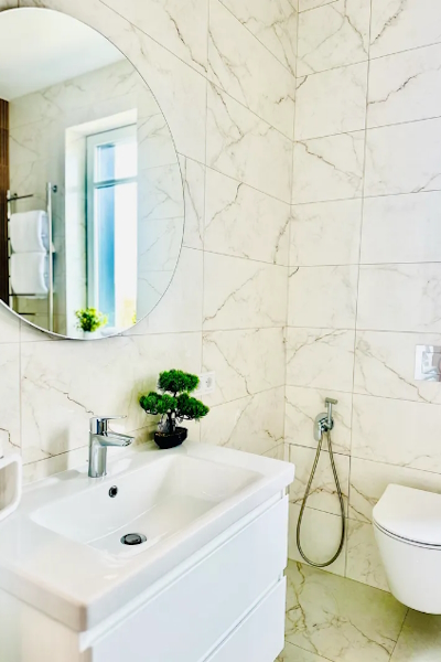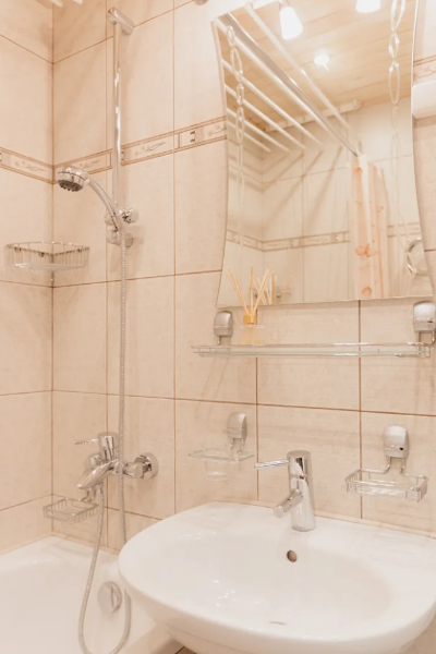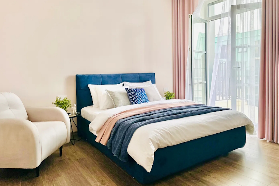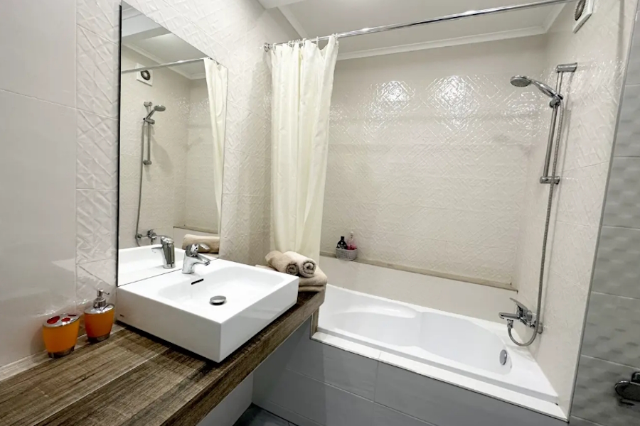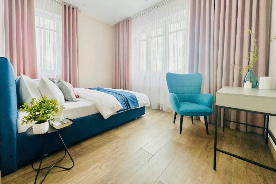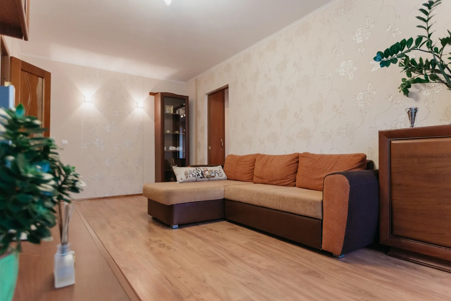 Квартира площадью 65 м² находится на шестом этаже десятиэтажного дома на ул. Профессора Севастьянова. Здесь смогут разместиться до шести гостей. Для них в квартире предусмотрены две спальни с двумя кроватями и диваном, отдельная «кухня с посудомоечной машиной и микроволновой печью, телевизор с плоским экраном, гостиный уголок и одна ванная комната с биде».
