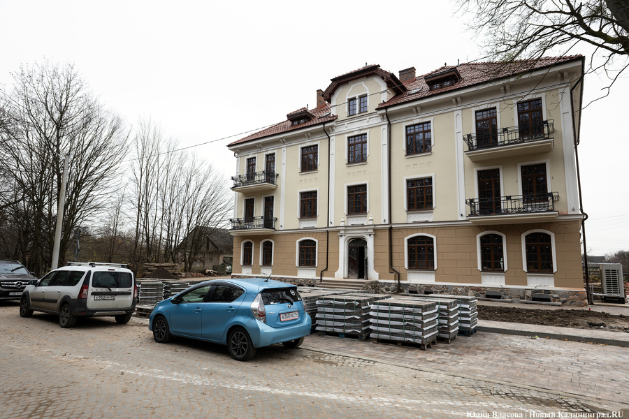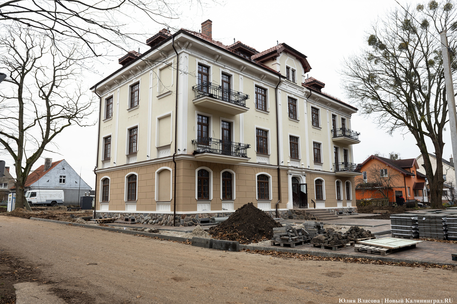 В Железнодорожном заканчивается благоустройство у первой гостиницы посёлка (речь идёт о доме № 4А на Советской улице, которое ранее инвесторы называли будущим апарт-отелем — прим. «Нового Калининграда»). Как сообщил «Новому Калининграду» инвестор проекта, гендиректор компании «Бартия» Вячеслав Воронин, фасадные работы уже полностью завершены, осталось дождаться лишь изготовления входной двери и возвращения с реставрации двери в холл.