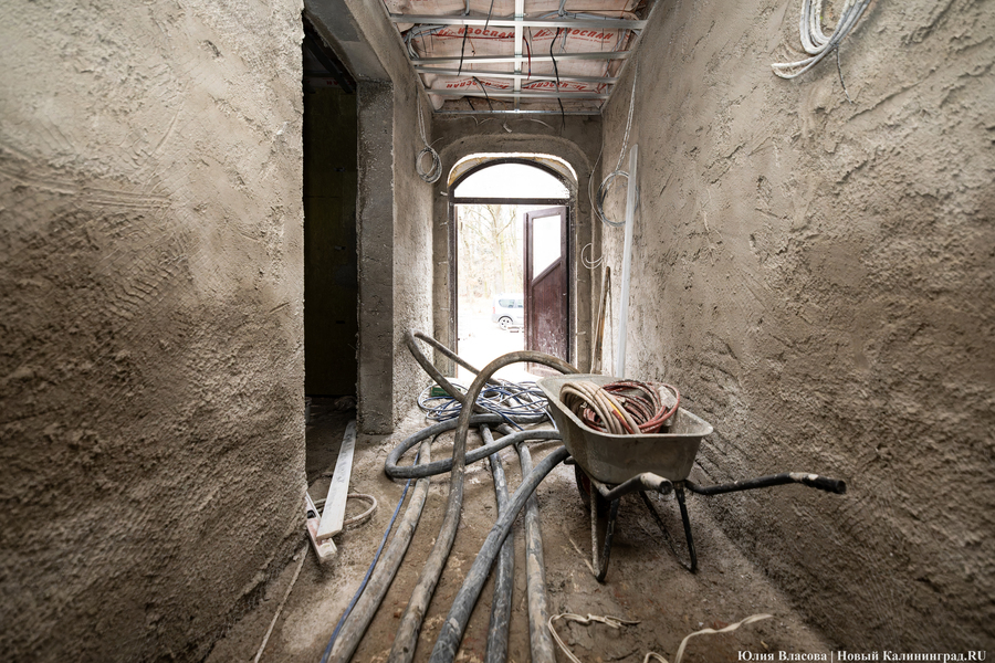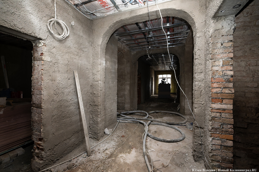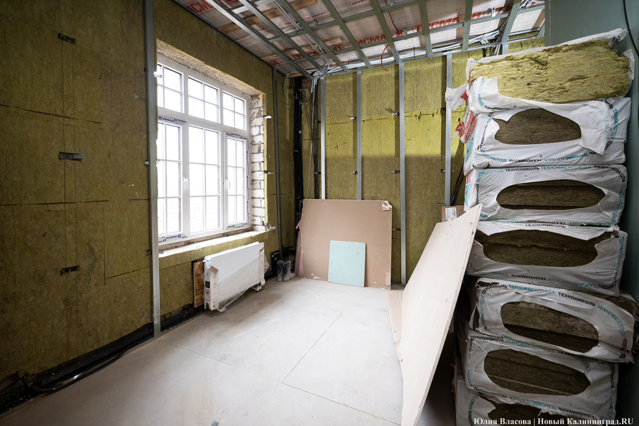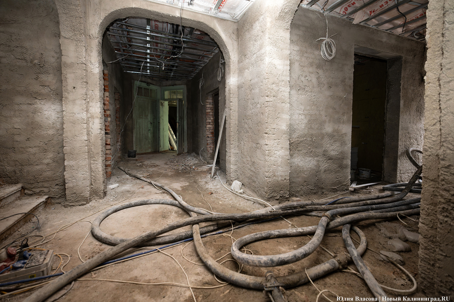 «В гостинице все сети и коммуникации протянуты, остаётся только отделка. По отоплению мы ждём только приёмку от „Калининградгазификации“, — добавил руководитель компании „Строймонтажсервис“ Валерий Щербатых, являющийся на объекте подрядчиком. — Сейчас входные двери нам привезут — и всё, контур закрыт».