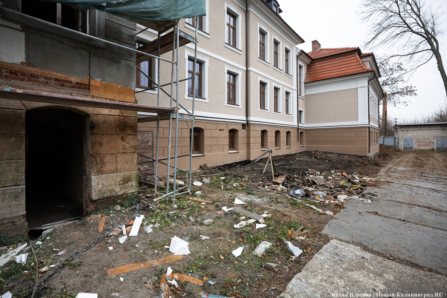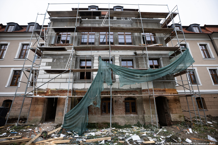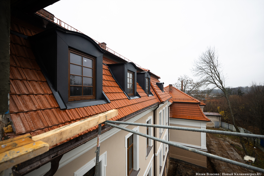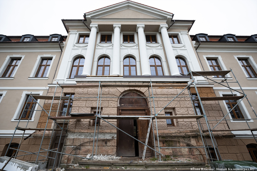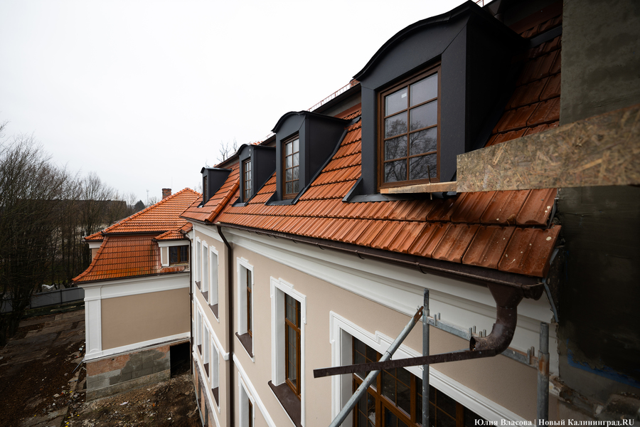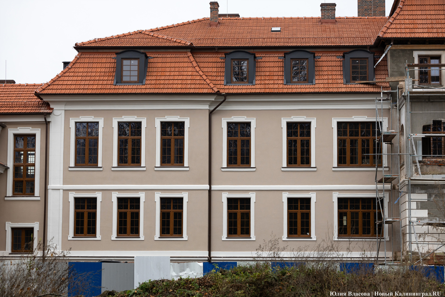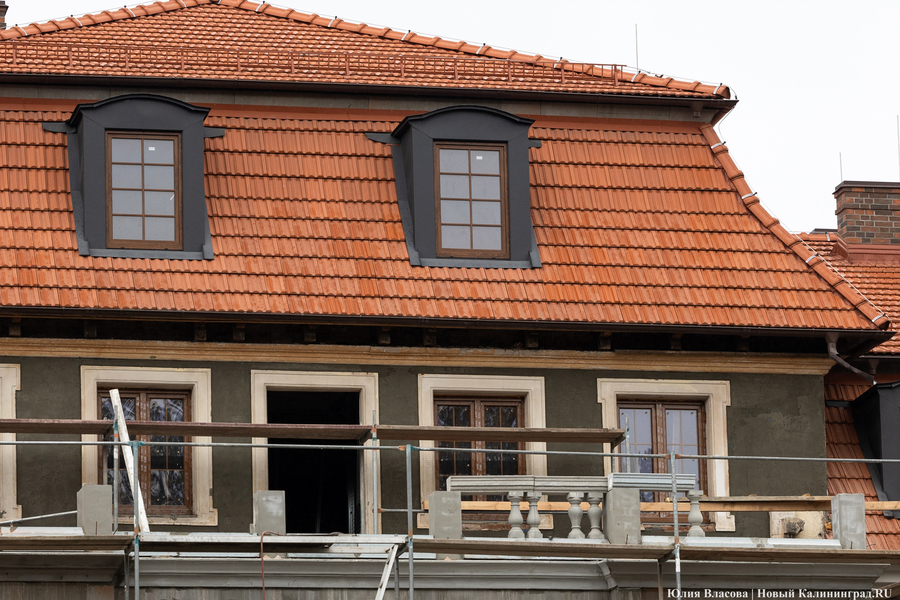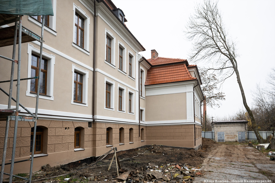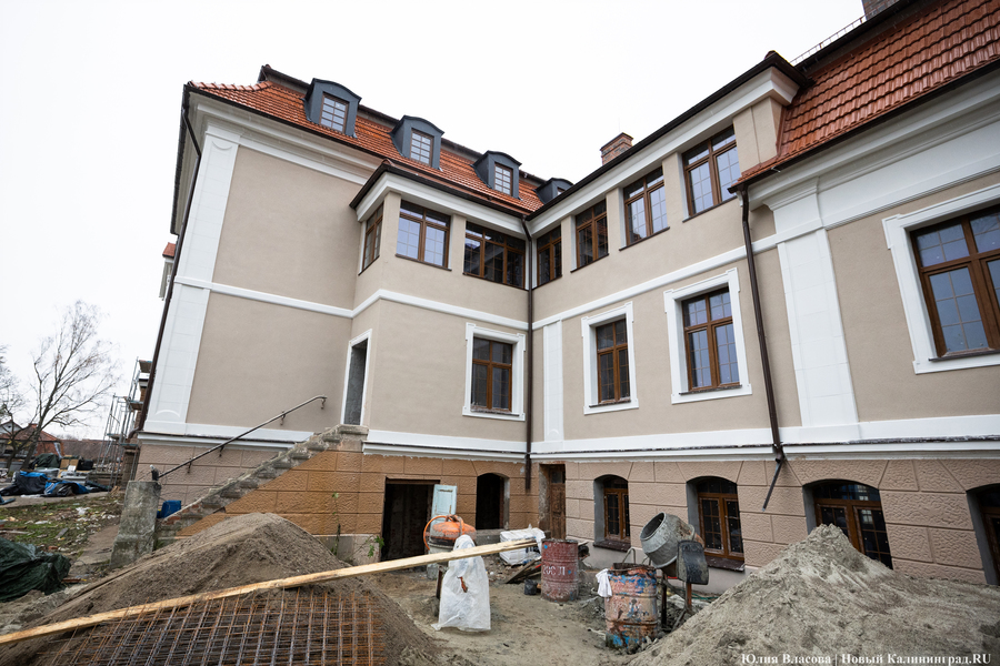 Здание Крайсхауса в Железнодорожном, пустовавшее несколько лет и едва не погибшее из-за постепенного разрушения кровли, сегодня выглядит так, как будто его отстроили заново (не превратив при этом в новодел). В 2023 году инвестор успел отремонтировать крышу здания, а в течение 2024-го подрядчики практически закончили восстановление фасада, полностью заменили все окна, приступили к отделке и начали подготовку к укладке коммуникаций. Что ещё происходит в памятнике архитектуры, который готовят под санаторий, и с какими трудностями сталкивается его арендатор, выяснял «Новый Калининград».