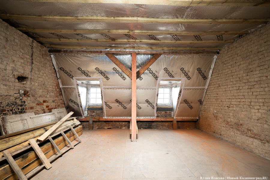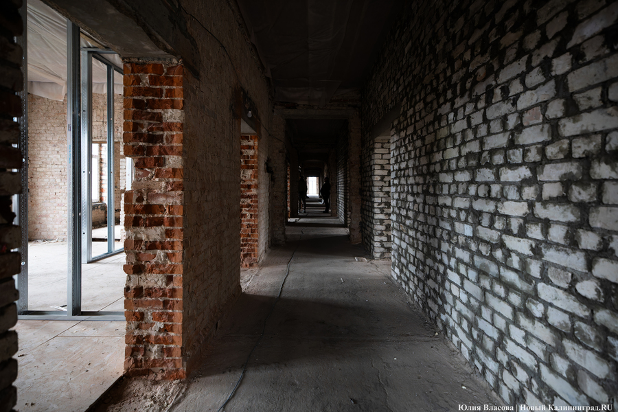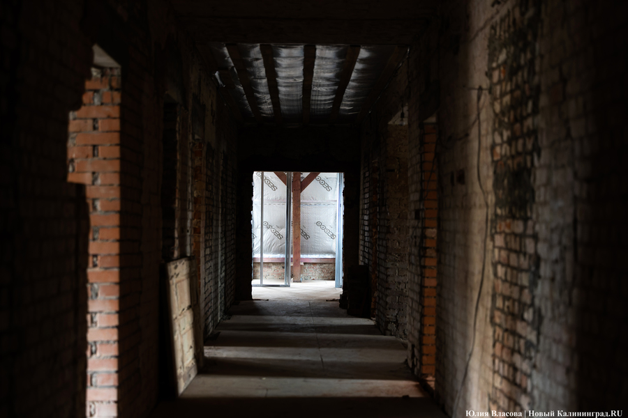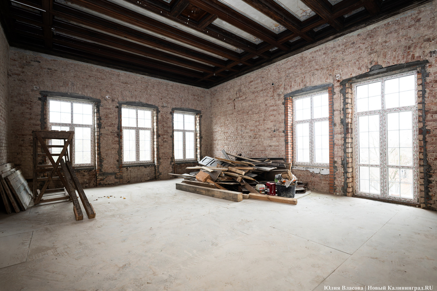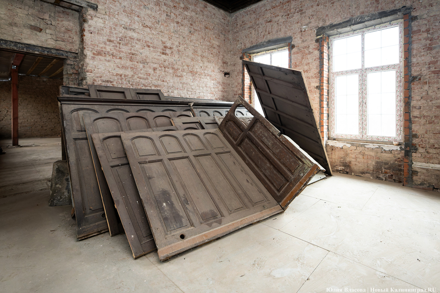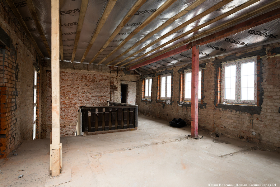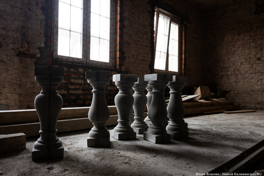 «У нас перед Корпорацией развития есть обязательства по срокам. Это лето 2025 года, — объясняет Воронин. — Должны успеть, однако прогнозировать что-то сейчас сложно из-за трудностей с поставками материалов. Например, я столкнулся в Калининграде с тем, что не могу найти 16-ю арматуру. Её просто нет в регионе. Доставляют её паромами, и она вся расписана. Приходится спрашивать по друзьям и знакомым, где-то перехватывать. Старого кирпича для облицовки также нет. Чтобы его найти, нужно купить здание и разобрать его либо доставать через специализированных ребят, которые этим промышляют. По мелочам тоже проблемы: розеточные группы, тройные выключатели — всё это заказные позиции. В основном через Москву всё достаём. Даже двери нам московская фабрика делает, потому что такие, какие нам нужны по проекту, здесь мы не достанем».