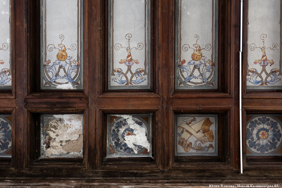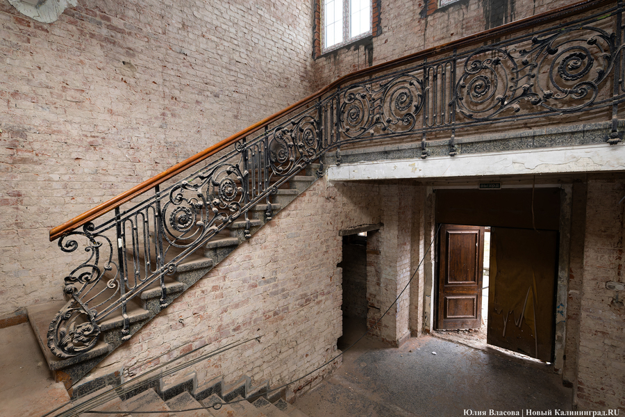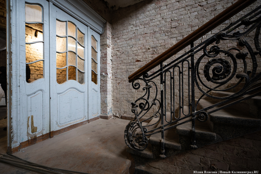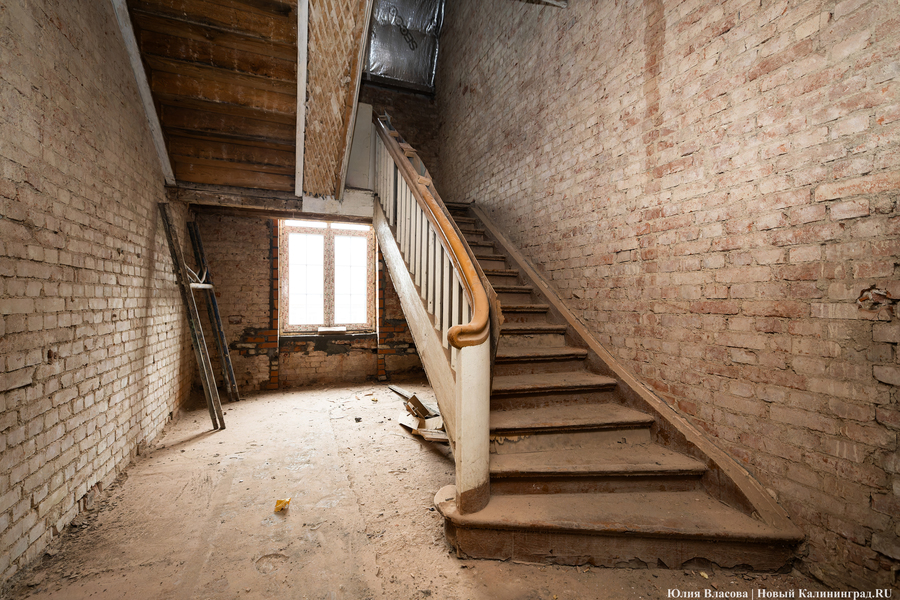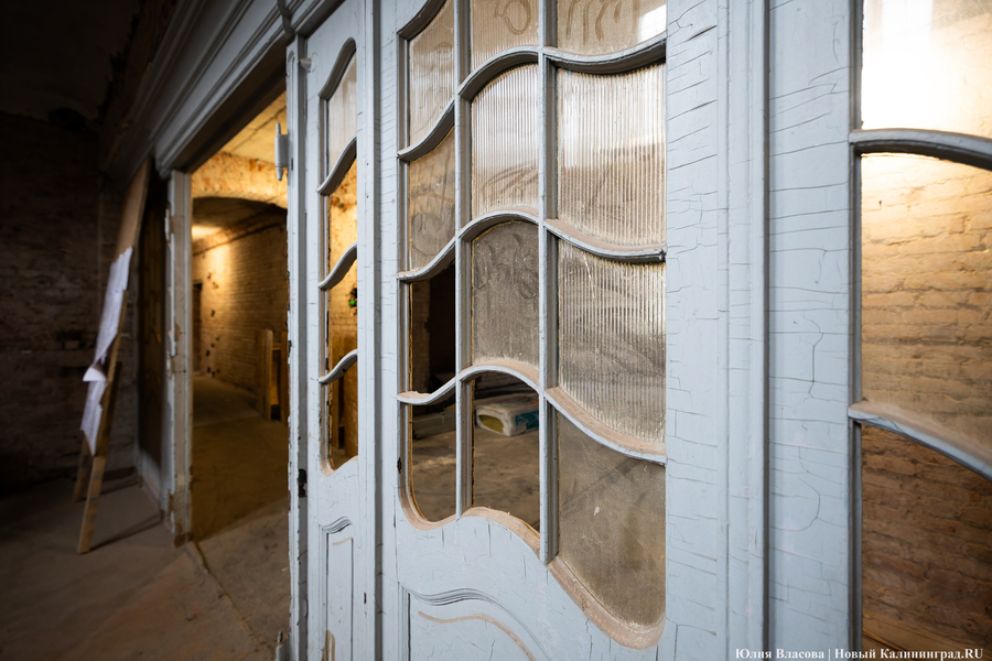 Внутри здания инвестор максимально старается сохранять идентичность. Однако запущенные в предыдущие годы необратимые процессы вынуждают от чего-то отказываться. В частности, на парадном входе поверх ступеней из гранитной крошки был залит слой оригинального немецкого линолеума. Его придётся снять, так как в советское время он был неоднократно покрашен.