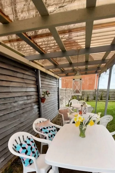 Двухэтажный дом площадью 150 м² сдаётся в посёлке Морское Зеленоградского округа. Здесь смогут разместиться до 12 гостей. В их распоряжении будут три основных номера, гостиная, дополнительный номер с видом на залив и мини-кухня с индукционной плитой. «В каждом номере душ и туалет, холодильник, двуспальная кровать и диван», — обещает автор объявления. Правда, компании «моложе 25 лет» праздновать сюда не пустят.