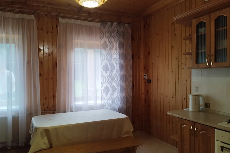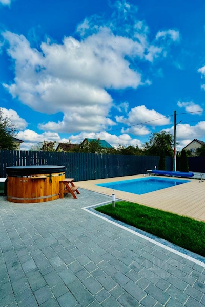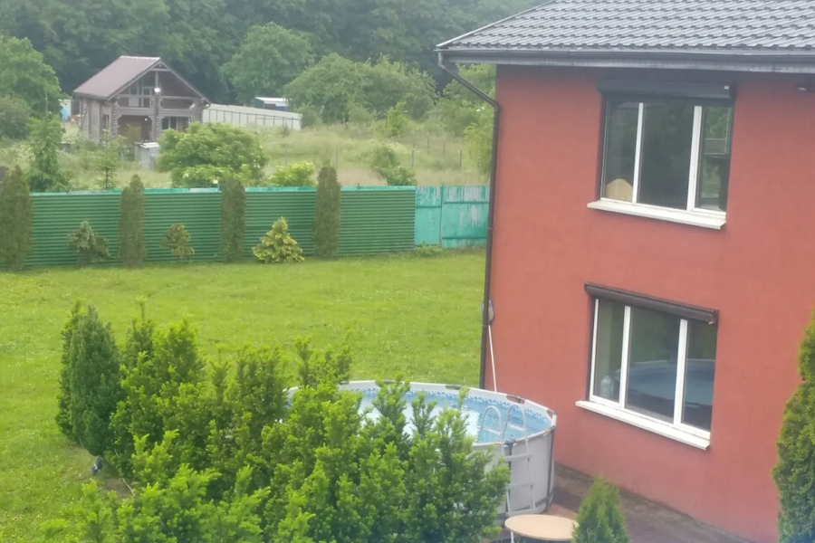 Двухэтажный дом площадью 85 м² находится в СНТ «Заря» (Московский район Калининграда), «в 15 минутах от центра», как утверждает автор объявления. «Есть всё необходимое: постельное белье, посуда, интернет, парковка, тёплый бассейн», — говорится в объявлении. Отдельно можно заказать баню и купель с гидромассажем. Минимальный срок аренды за указанную стоимость — двое суток. Дом также можно снять на несколько часов (не менее трёх). В числе удобств указаны посудомоечная и стиральная машины, кондиционер.