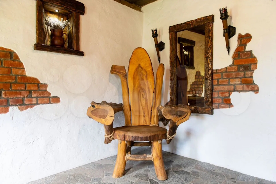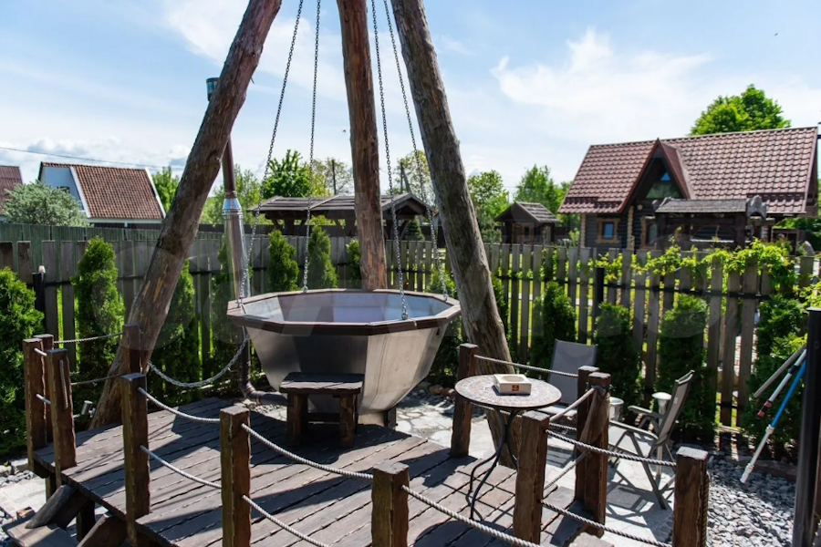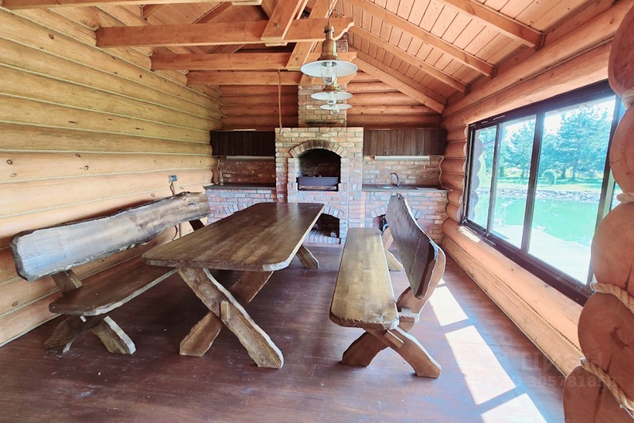 Второй объект — сруб площадью 75 м², выполненный из брёвен диаметром 22 см с мебелью и техникой. В стоимость также входят «дополнительные объекты»: дом для персонала (30 м²), хозяйственная постройка, «идеально подходящая для создания контактного зоопарка» (130 м²), теплица и два немецких погреба. «Для отдыха и развлечений» предлагаются костровая и гриль-зона с отапливаемой деревянной беседкой. «Специально отведённое место под строительство ресторана» делает объект, по мнению владельцев, «идеальным для организации гостиничного бизнеса или агротуризма». Также отмечается, что ко всем зданиям усадьбы подведён газ.