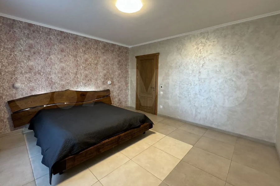 На первом этаже находятся кухня — гостиная (39,8 м²) «в классическом стиле с высококачественной техникой и антикварной деревянной мебелью», санузел, холл и два вспомогательных помещения, на втором — три спальни, санузел и гардеробная.