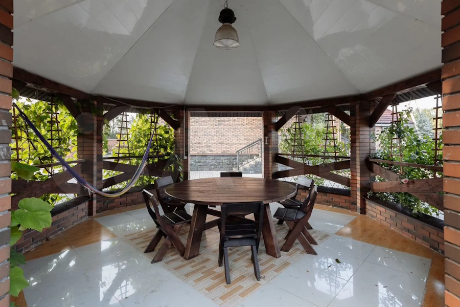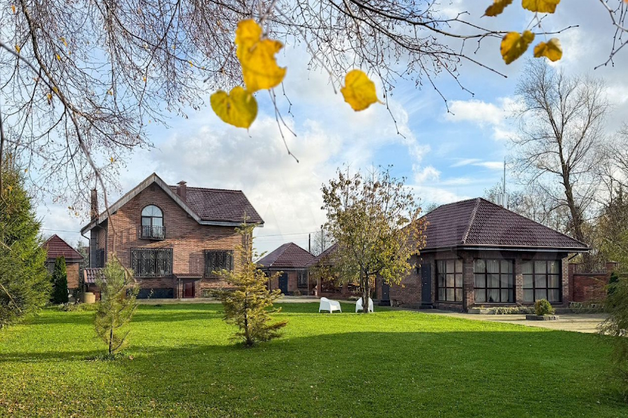 Дом и пристройки находятся на 12 сотках земли, два гектара земли вокруг — в аренде. На территории обещают парковку, баню, помещение для хранения инвентаря, теплицы, футбольное поле, собственный пруд, плодовые деревья и кустарники.