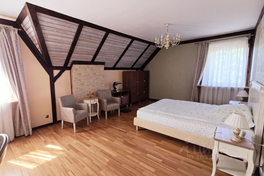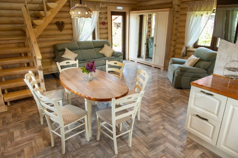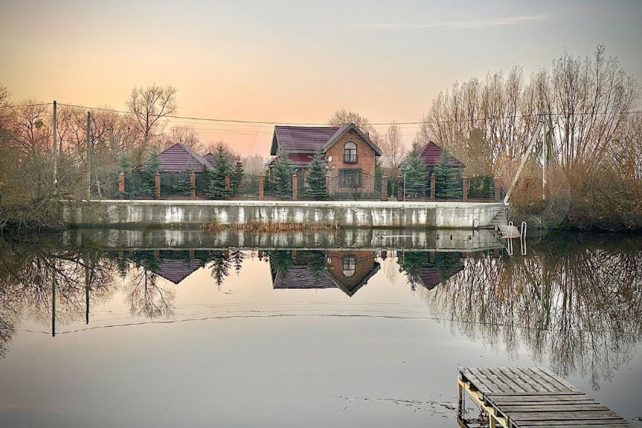 Двухэтажный дом площадью 136 м² находится «на берегу Полесского канала». Усадьба также предлагается как для проживания, так и для «коммерческого использования в качестве загородного отеля». «Хозяева не экономили силы, средства и время на реализацию своей мечты», — рассказывает автор объявления, описывая «продуманную функциональную планировку, качественный современный ремонт».
