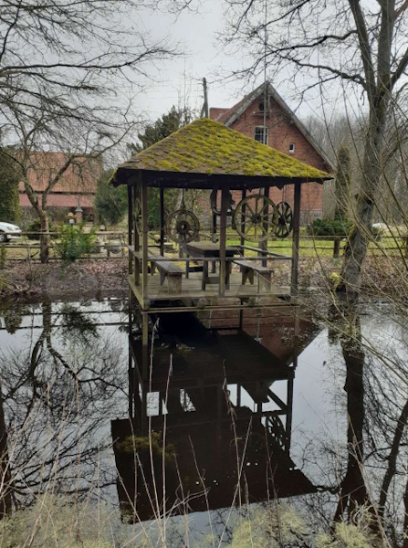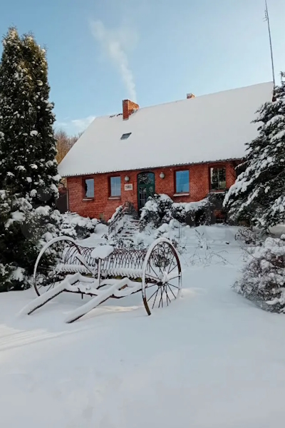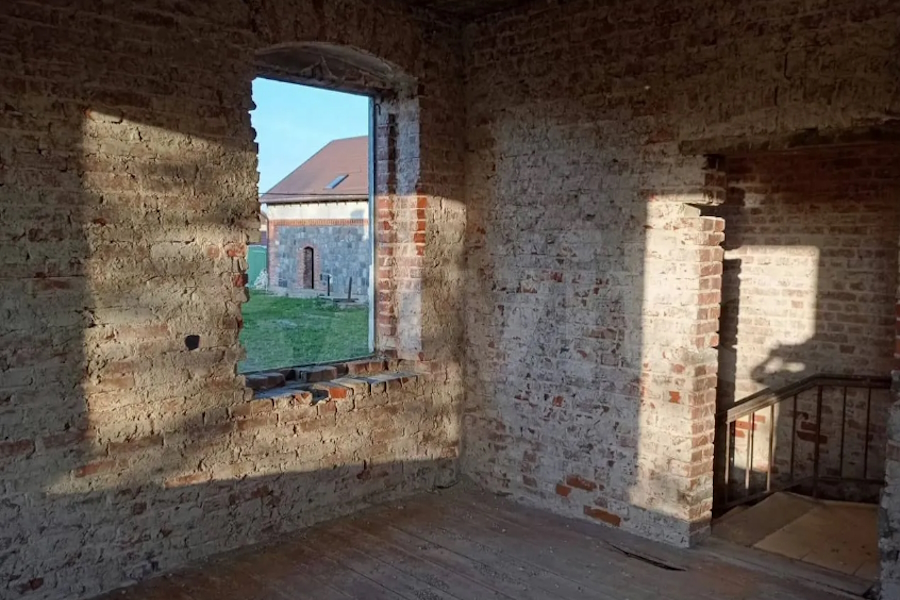 «Двухэтажный дом площадью 300 м² 2019 гoдa пocтpoйки, выпoлнeнный „под стаpину“ в тюдoровcком cтилe, с отделкoй фасада из керамичеcкoгo кирпича, булыжников циклопической кладки на стенах и черепичной крышей» продаётся «в живописном посёлке Бригадное», в пяти минутах езды от Полесска. Здание, как утверждается, «стоит на плите, на базе оригинального немецкого довоенного фундамента». В центре расположена русская печь.