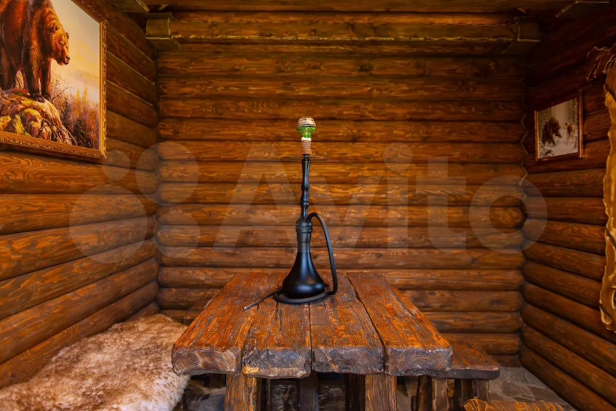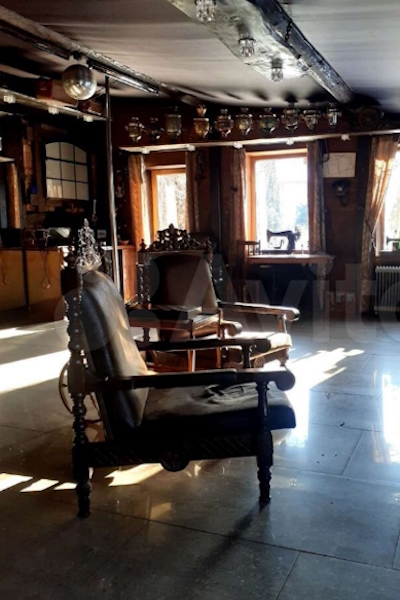На территории усадьбы расположены четыре объекта. Первый — здание площадью 338 м², «которое идеально подходит для создания различных коммерческих объектов». При этом отмечается, что на самом деле это баня «с авторской мебелью и ремонтом», каминным залом, номерами, кухней и прачечной.