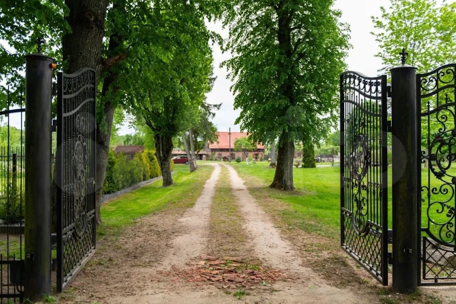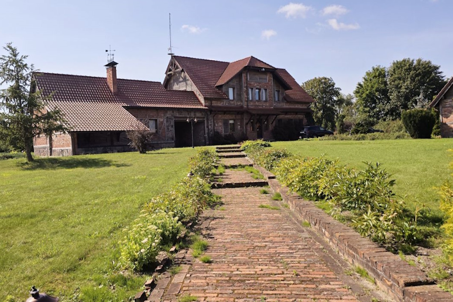 Дом, как утверждает владелец, «сделан по госзаказу», «все балки калиброваны, изготовлены на немецких предприятиях». Также в объявлении упоминается некое «королевское лесничество 1900 года постройки». 3,12 га земли находятся в собственности, 3,8 — в аренде. Будущему владельцу обещают частично оставить мебель. Судя по всему, особым преимуществом автор объявления считает отсутствие соседей, т.к. об этом упоминается дважды. Ближайший жилой дом находится в 2 км от усадьбы.