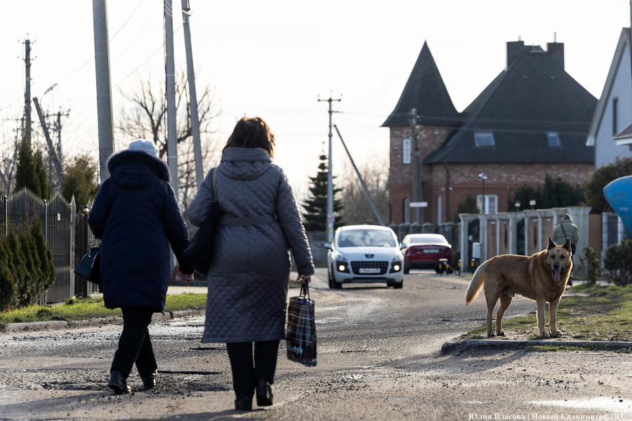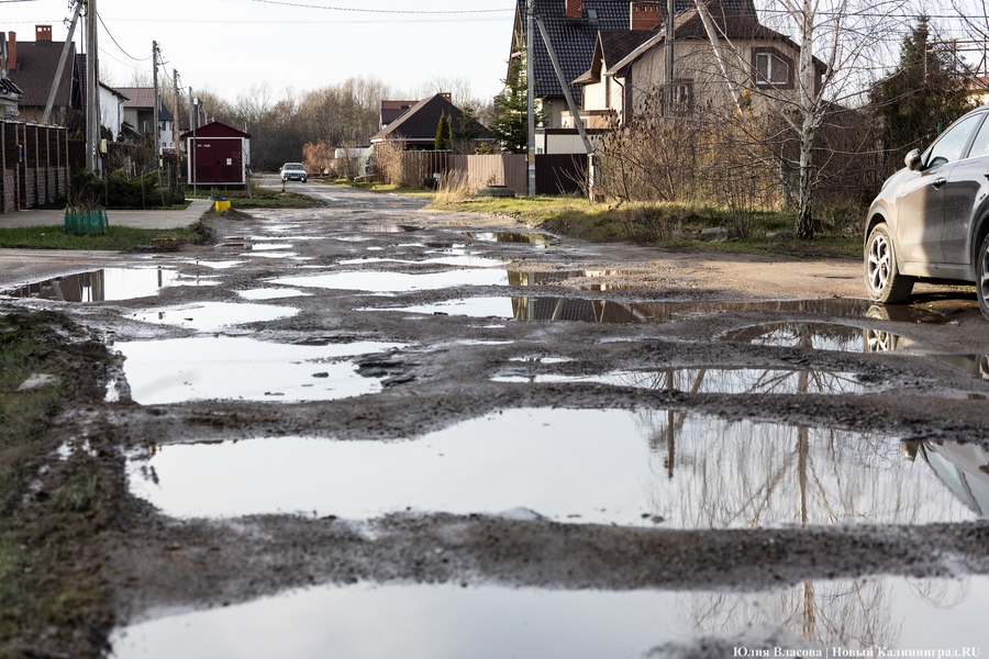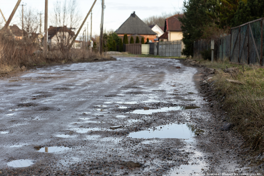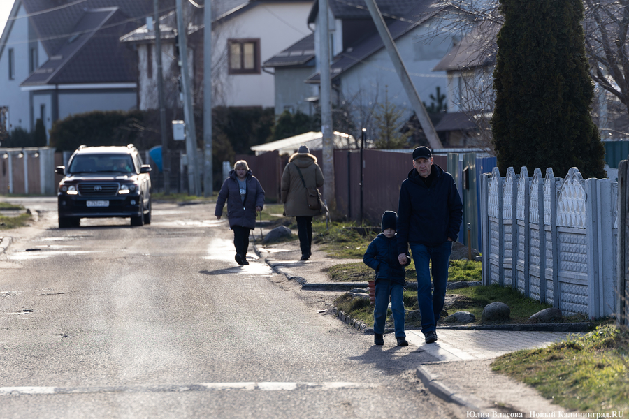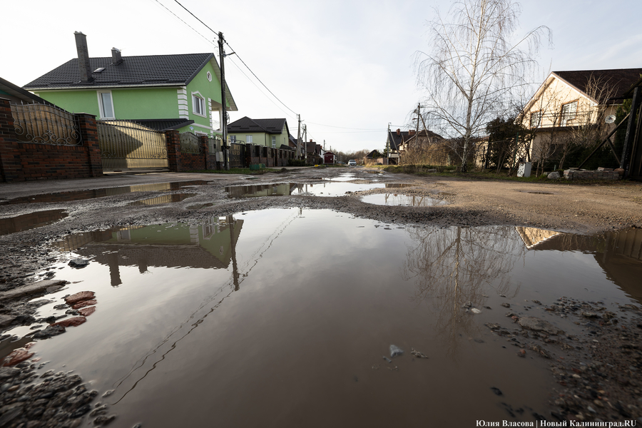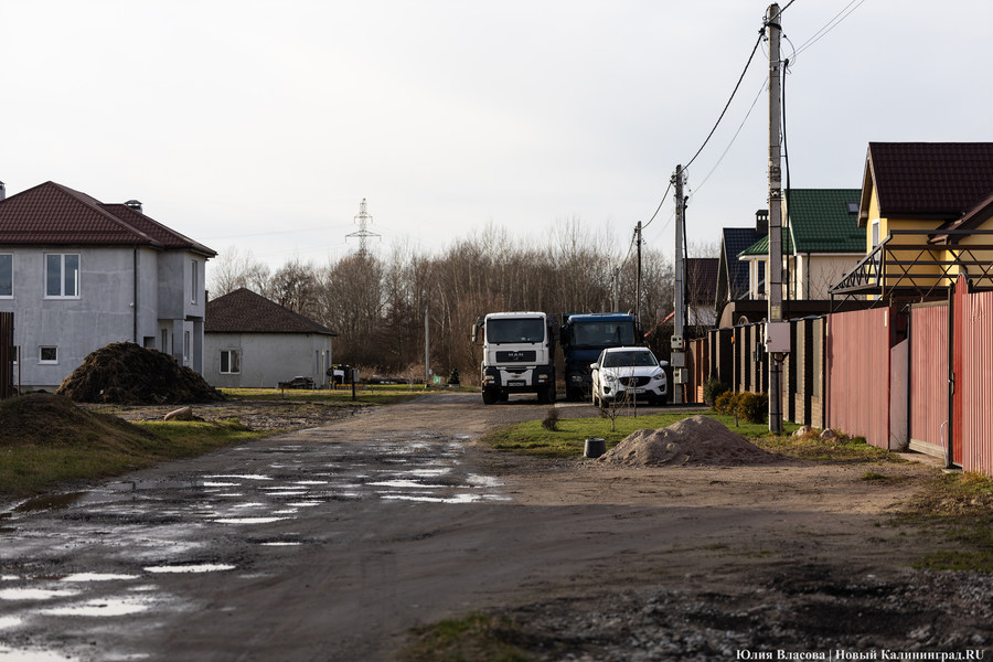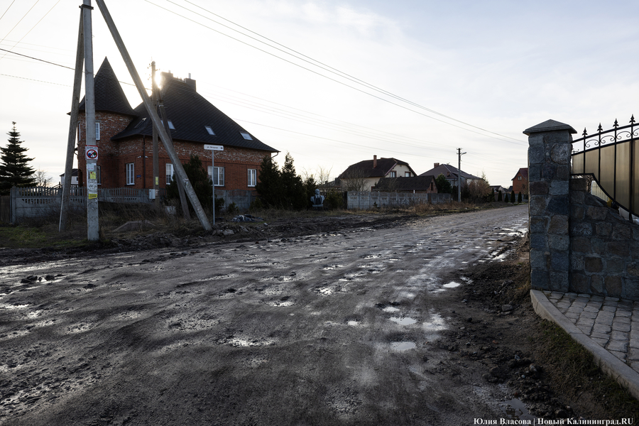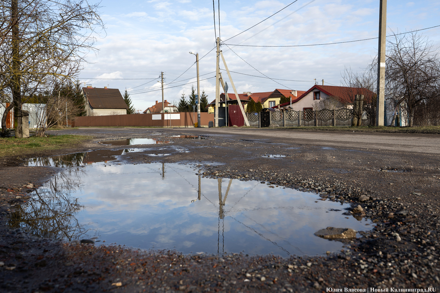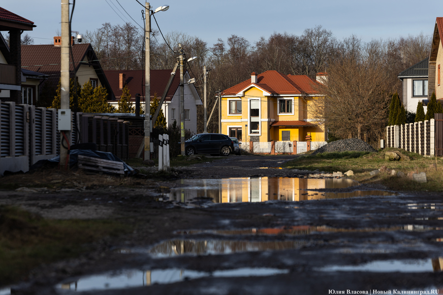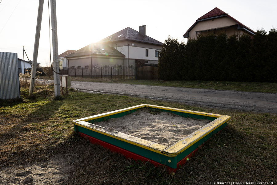 Когда мы приехали в поселок, он был укутан снегом, но как только снег сходит, его место основательно занимают огромные лужи. Странным образом они здесь появляются, даже если дождя неделю не было. «Когда-то поселок был крошечным, — проводит нам экскурсию местная жительница Елена Гордейчик. — Сначала был немецким, потом советским, но сегодня от того прошлого осталось, может, несколько домов на центральной улице. Лет 15 назад власти Гурьевского района начали здесь активно продавать землю. Брали мы ее буквально в поле, ничего вокруг не было. Вы на размеры домов не смотрите, люди их строят по 10–15 лет. Внешне красиво, а внутри вечная стройка. Я, к примеру, приехала сюда в 2010-м из Белоруссии и в 40 лет вышла замуж за калининградца. Тогда и решили, что будем строиться в Ново-Дорожном».