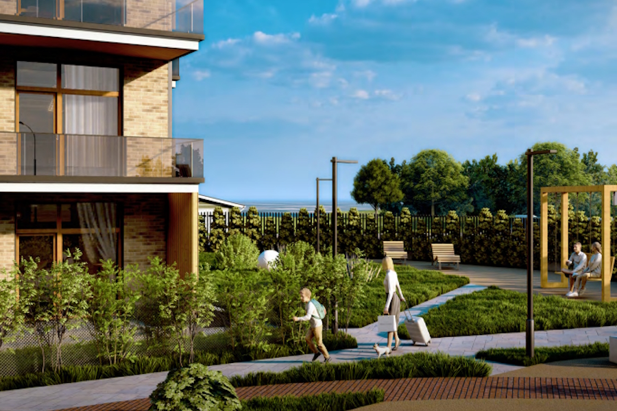 Отправившись в поисках подробностей на сайт ЖК, можно узнать, что до моря будущих владельцев будут отделять пять минут ходьбы. Путь до Синявинского озера займёт 10 минут. Также обещают «захватывающие морские виды из окон».