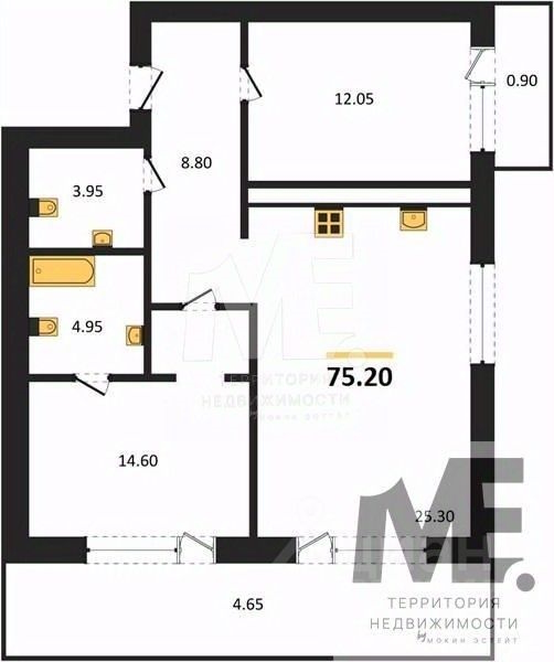 Трёхкомнатная квартира в ЖК «Амбер Хаус» — 28,5 млн рублей
