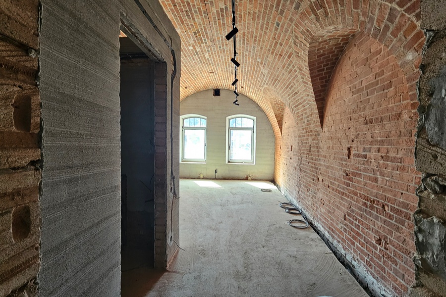 Впрочем, ещё в конце 2022 года директор областного центра поддержки предпринимательства Кирилл Лило рассказывал, что работа на форту «проведена колоссальная». На тот момент, по его словам, в будущем музейно-гостиничном комплексе были оплачены работы по изготовлению и установке окон, а также врезке в систему водоснабжения. Оплатили тогда инвесторы и поставку оборудования для очистных сооружений и монтаж вентиляции, а также их подрядчик провёл алмазное бурение для прокладки наружных сетей.