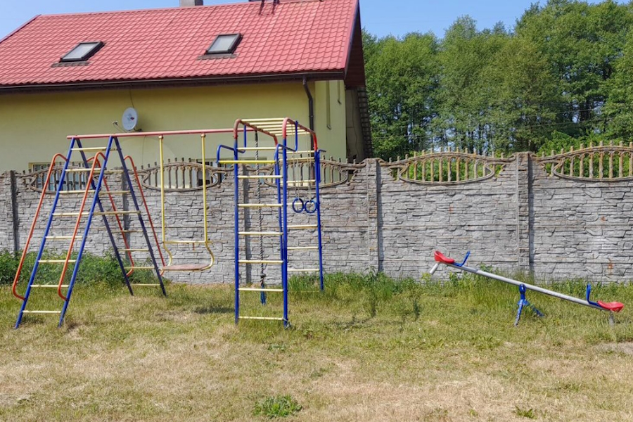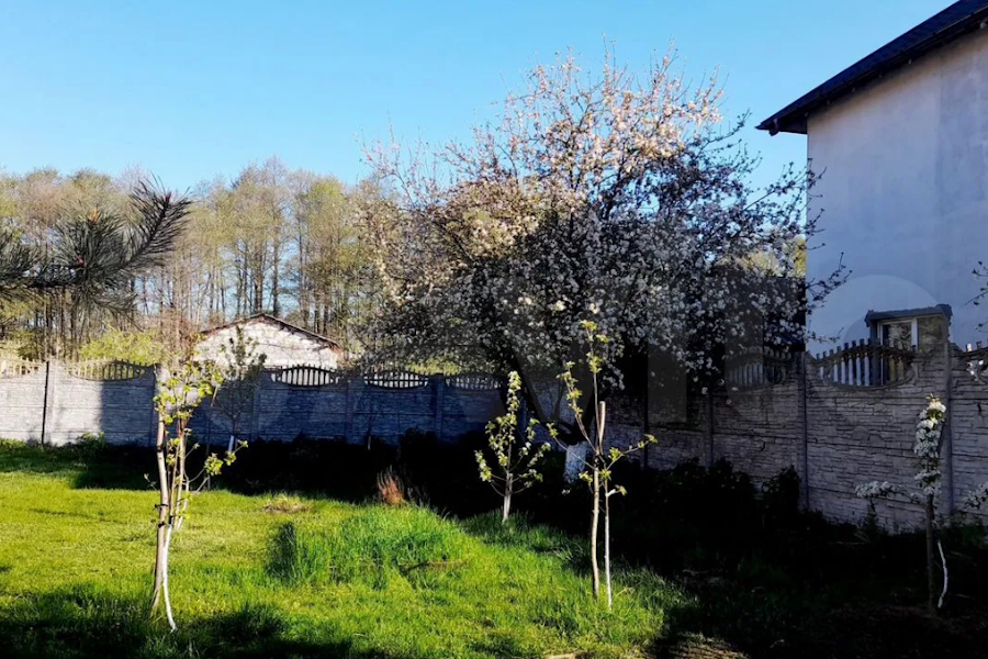 «Весь комплекс огорожен забором из кирпича. Есть парковочные места возле дома на несколько машин. Входные ворота. Участок очень зелёный и ухоженный, фруктовые деревья, сосны, ели, туи по периметру, которые формируют зелёные аллеи. Также расположен отдельный дом с камином, дровяник, беседка, качели. Несколько уединённых зон отдыха, укрытых в тени деревьев, созданы для утреннего кофе, чтения книг или вечерних бесед в атмосфере полного покоя. Аромат хвои и пение птиц будут радовать каждое утро», — гласит описание.