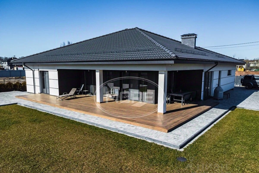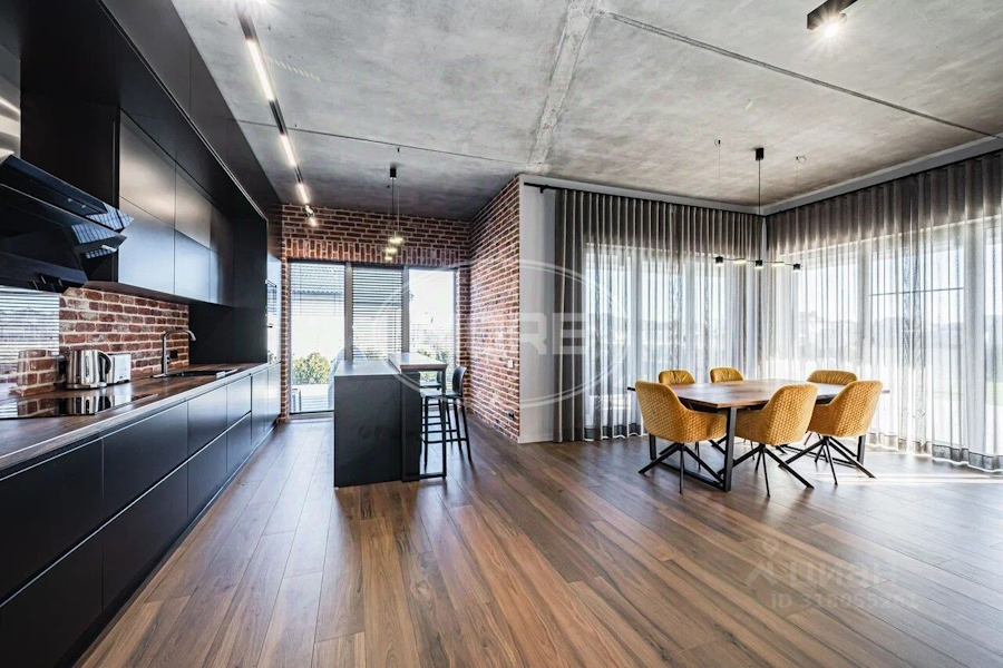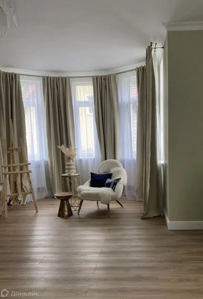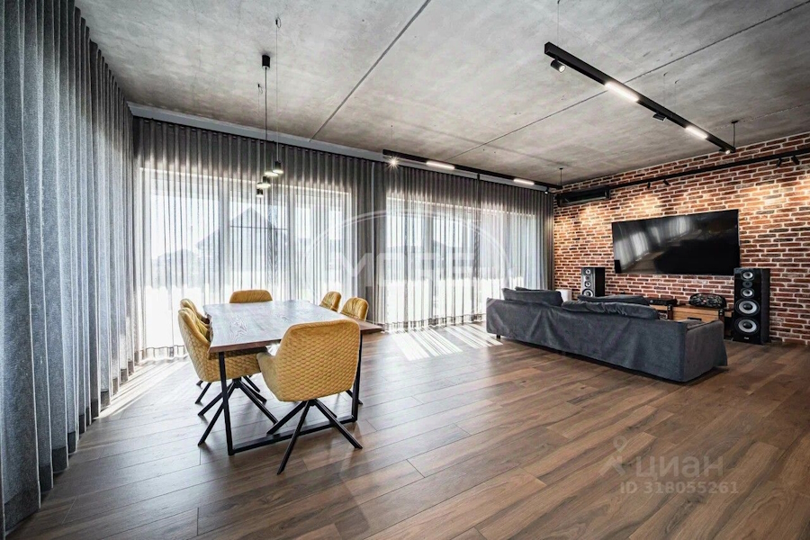 Строчкой ниже расположился одноэтажный четырёхкомнатный «дом с дизайнерским ремонтом» 2024 года постройки площадью 315 м² на ул. Пражской. Про ремонт придётся поверить на слово, ведь к объявлению с ценой 35,3 млн рублей не прикрепили ни одной фотографии интерьера. Из краткого описания можно узнать лишь о наличии «просторной кухни-гостиной», двух санузлов, трёх спален, технического помещения и гаража. Также упоминаются высокие потолки и «все коммуникации: газ, электричество и канализация». Жилая площадь — 150 м².