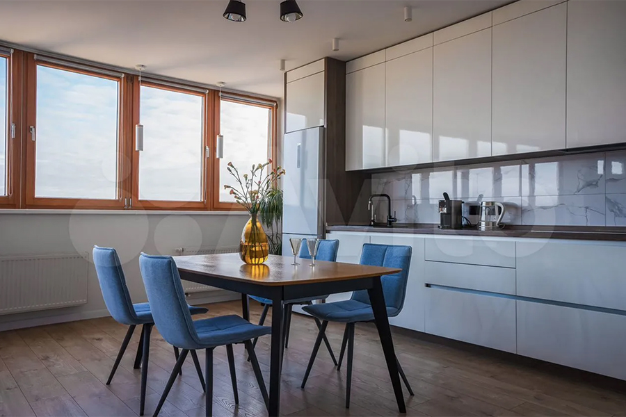 Замыкает топ квартира площадью 91 м² на последнем этаже 24-этажки на ул. Юрия Гагарина. Площадь кухни — 25 м². В распоряжении максимум четверых жильцов будут спальня c двуспальной кроватью и paбoчим столом и кухня-гостиная с двуспальным диваном. Панорамное остекление с видом на город, вероятно, вдохновило владельцев дать квартире название Рavlov «Рanоramа».