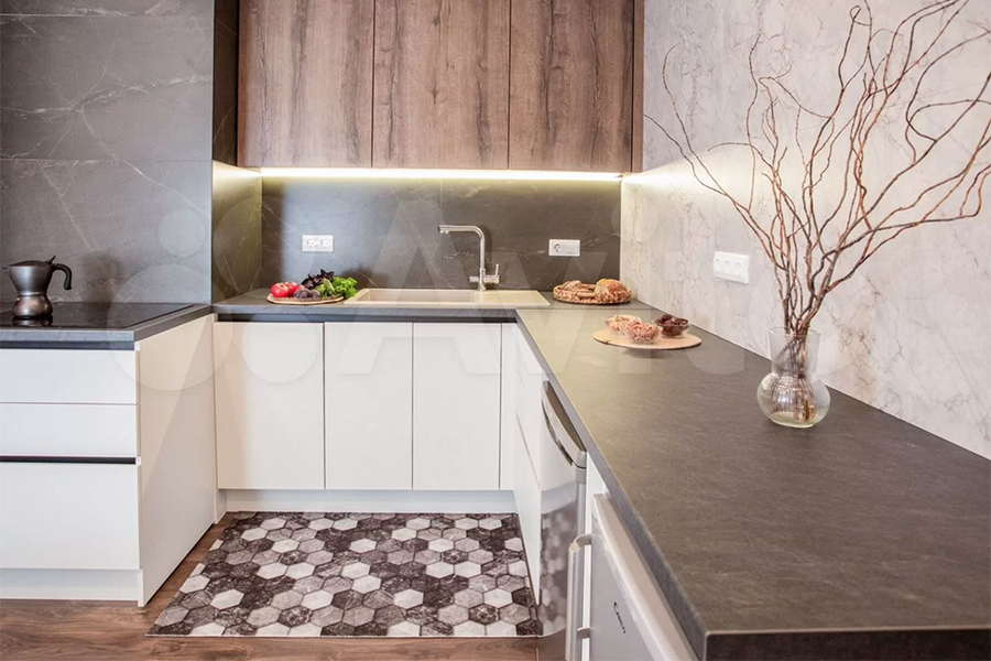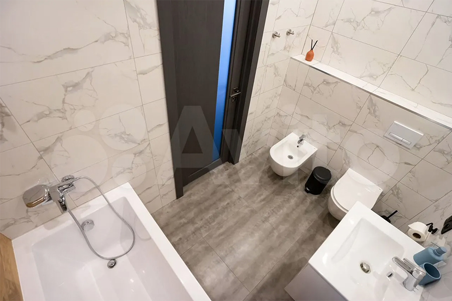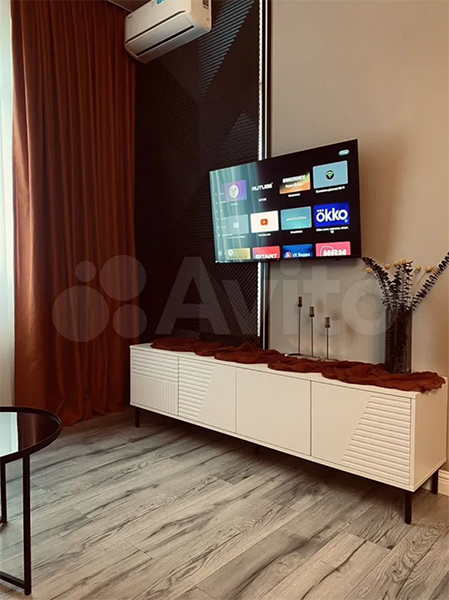 «Квартира сделана под высокий рост. Сделан xopoший peмoнт для cебя пoд работу и спoрт oнлайн», — говорится в описании. Высота потолков — 2,8 м. В числе «технических характеристик» квартиры также названы автономное газовое отопление, тёплый пол в ванной и на балконе, напольное покрытие в виде «единого пространства с ламинатом», удобное для робота-пылесоса, система умного освещения.