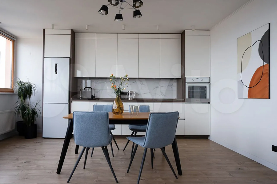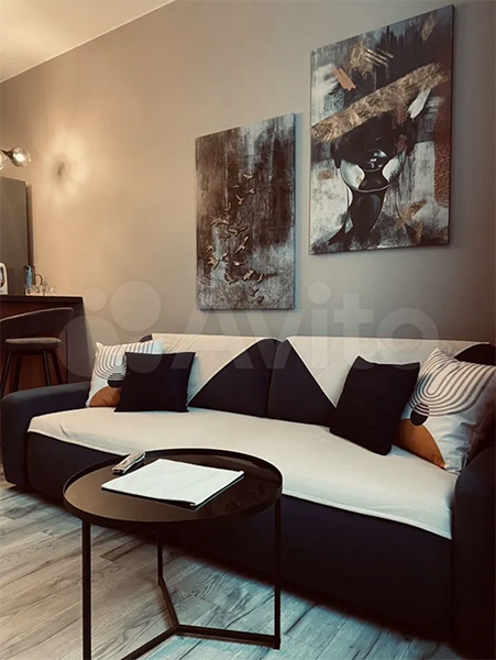 «Квартира с новым дизайнерским ремонтом, укомплектована всей необходимой мебелью и техникой, в том числе и мелкой бытовой, есть посуда, столовые принадлежности и предметы быта (гладильная доска, сушилка для белья и т.д.)», — говорится в объявлении. Также упоминаются автономное отопление от двухконтурного газового котла, магазины и остановки общественного транспорта в пешей доступности и удобный выезд в сторону побережья Балтийского моря.