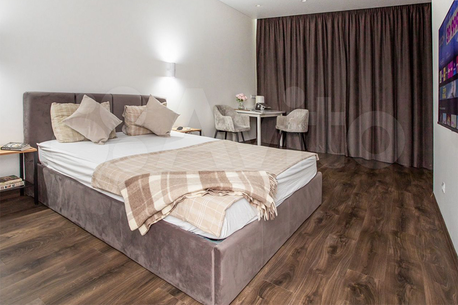 Объект, по мнению автора объявления, подойдёт студентам благодаря «удобному рабочему месту и спокойной атмосфере для учёбы». «Командированных» завлекают «сервисом и оснащением, как в апарт-отеле», пары и семьи — «простором и уютом».