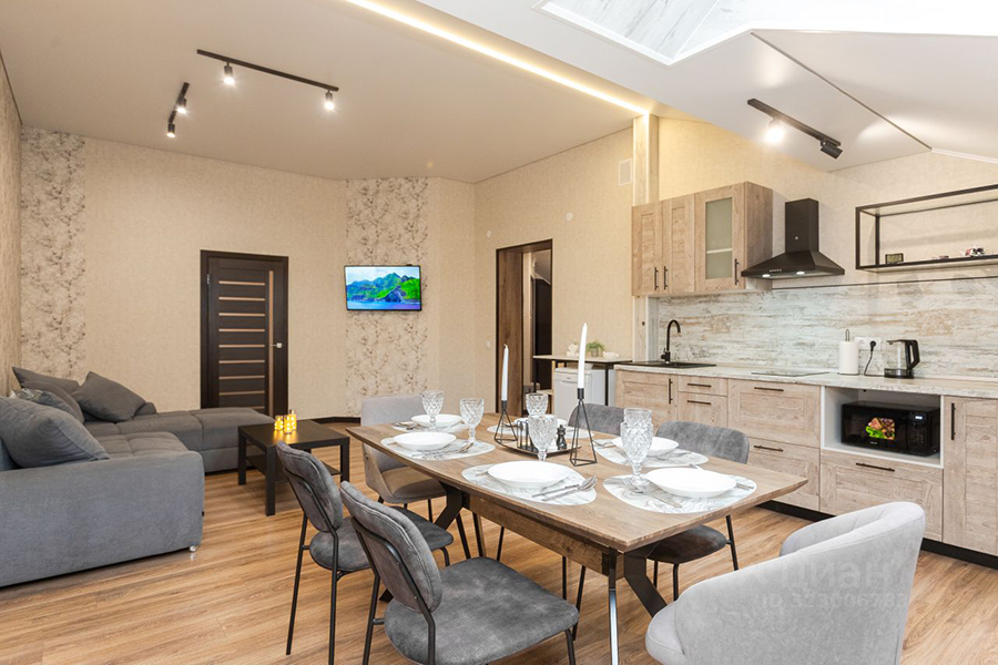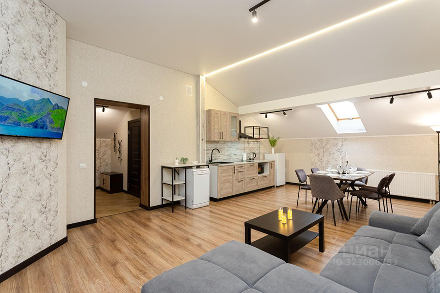 Возглавили топ трёхкомнатные апартаменты площадью 80,5 м² на последнем этаже четырёхэтажки на ул. Гагарина. Разместиться в трёх минутах ходьбы от «роскошного» Западного пляжа, и оценить «редкое сочетание локации, комфорта и уединения» приглашают семью или компанию. При этом проведение вечеринок и шумных мероприятий запрещено, как и курение в помещениях. А вот арендаторам с питомцем здесь не откажут. Указанная цена актуальна для октября. В летние месяцы она доходит до 350 тысяч рублей в месяц. В стоимость включено место на наземной парковке под шлагбаумом, что автор объявления называет «редкостью вблизи моря».