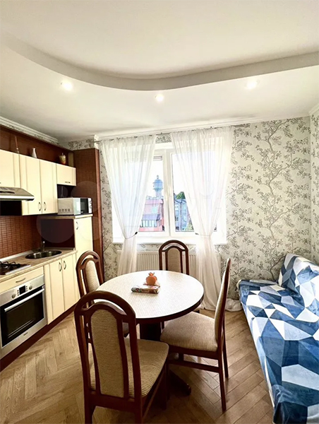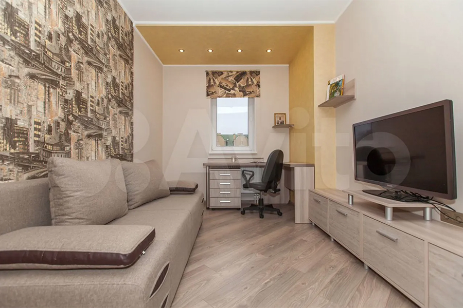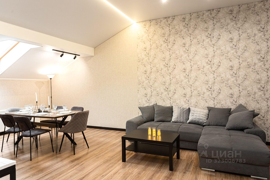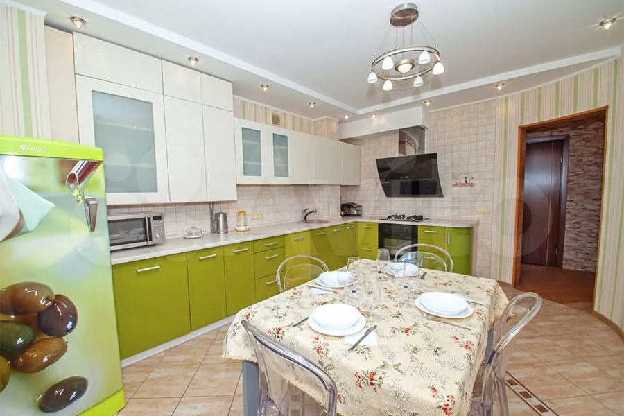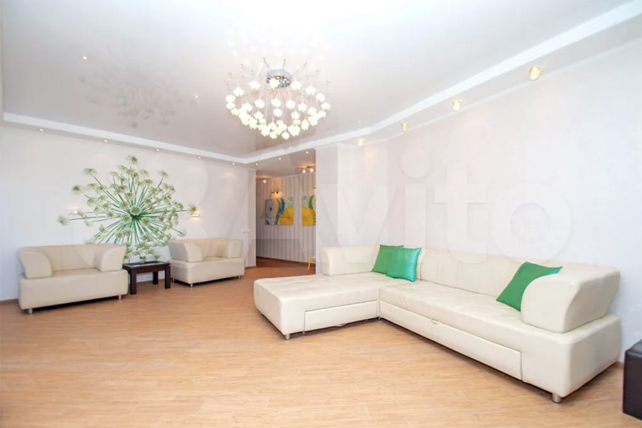 Замыкает топ квартира площадью 69 м² на четвёртом этаже кирпичной девятиэтажки 2015 года постройки. Объект описывают как «просторную квартиру для большой семьи», в распоряжении которой будут семь спальных мест и две рабочие зоны. Также обещают «всё необходимое для комфортного проживания». Животные и курение под запретом. В характеристиках указаны изолированные комнаты, лоджия, совмещённый санузел и косметический ремонт.