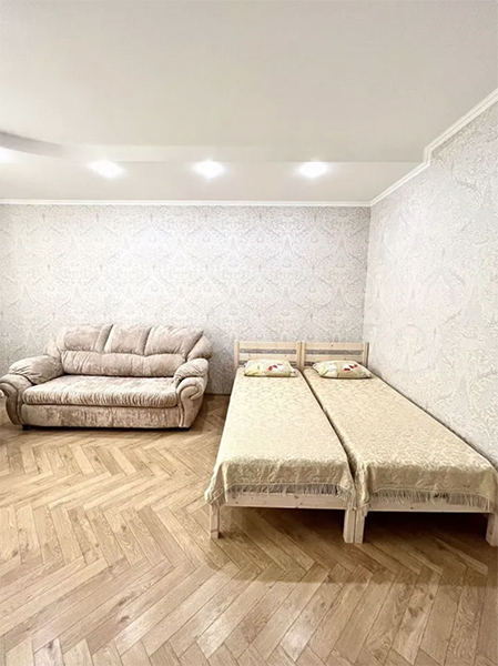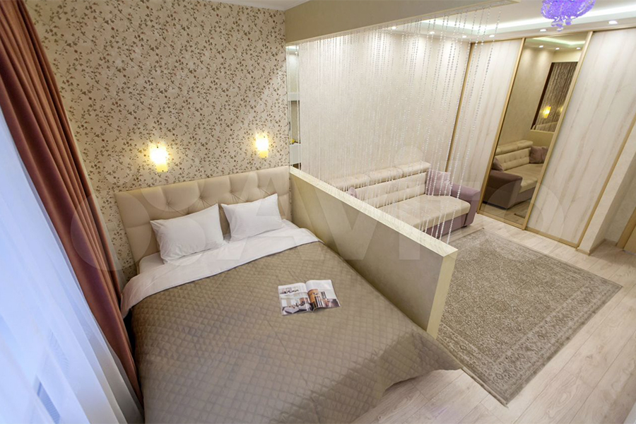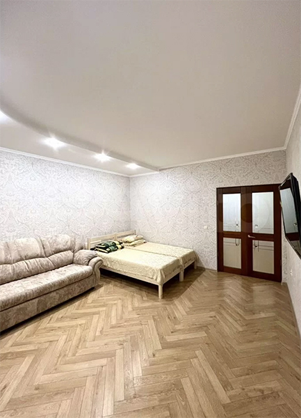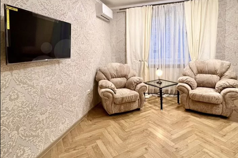 Жильцам обещают две спальни с двуспальными кроватями и просторную кухню-гостиную с раскладным диваном, белоснежное постельное бельё и полотенца, кухню со всей необходимой бытовой техникой и посудой. «Тихий двор, свежий воздух и хорошая шумоизоляция — ваш отдых будет спокойным и безмятежным», — гласит описание.