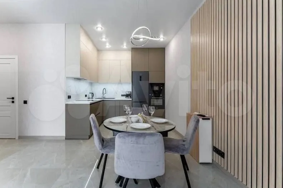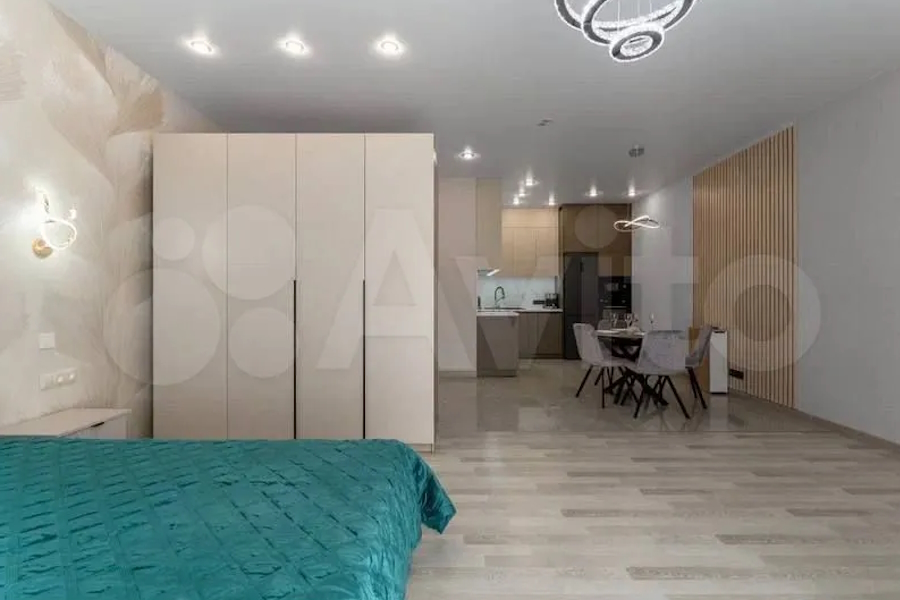 Замыкает топ квартира площадью 41,99 м² на четвёртом этаже восьмиэтажкти 2021 года постройки на Олимпийском бульваре. «Мечтаете о побеге от городской суеты? Это ваше место! Уютная, стильная и невероятно комфортная студия всего в нескольких шагах от Балтийского моря ждёт вас. Почему это идеальный выбор для отдыха? Мы специально разделили пространство так, чтобы вы чувствовали себя как в доме. Отдельная спальня гарантирует здоровый сон, а просторная кухня-гостиная станет центром притяжения для вечерних посиделок», — уверяет автор объявления.