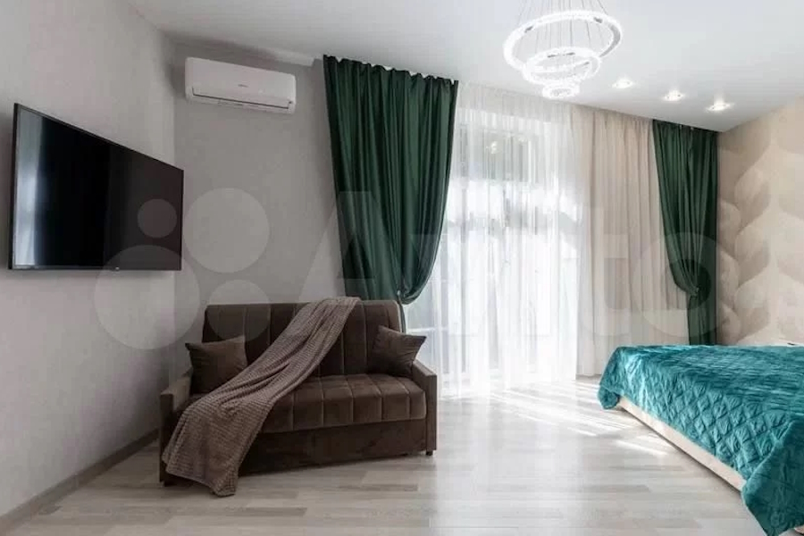 «Уютная светлая» квартира площадью 39,9 м² сдаётся на третьем этаже кирпично-монолитной пятиэтажки 2019 года постройки на ул. Аптечной. «Окна выходят на улицу и во двор, что обеспечивает хорошую освещённость и позволяет наслаждаться видами. Два балкона добавляют квартире комфорта и расширяют возможности для отдыха. Дизайнерский ремонт создаёт атмосферу уюта и стиля», — говорится в описании. До моря обещают 500 метров. Квартиру готовы сдать арендаторам без маленьких детей и животных.