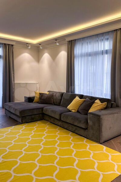 В квартире выполнен дизайнерский ремонт из «современных, качественных и брендовых материалов» по индивидуальному дизайн-проекту. Жилье можно назвать «комфортным и удобным» для проживания четырёх человек благодаря «грамотной планировке, расположению мебели и техническому оснащению». Стоимость аренды квартиры составляет 120 тыс. руб. в месяц.