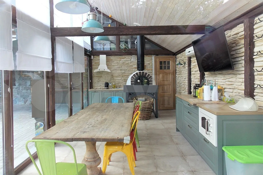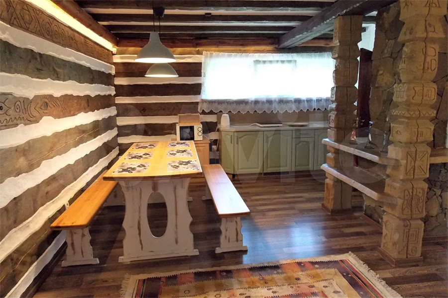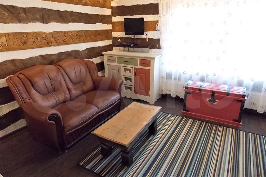 Интерьер «в стиле американских индейцев» готовы предложить гостям в Зеленоградске — в четырёхкомнатном доме площадью 175 м² на ул. Победы. В распоряжении гостей будут четыре спальни с двуспальными кроватями. В качестве «дополнительных мест для детей» предоставляются раскладушки. Кухня для приготовления и приёма пищи находится во дворе. Как рассказывает автор объявления, там созданы «отличные условия для отдыха на улице»: беседка с мебелью, зона барбекю, мангал, решётка и шампура. Также упоминаются сауна, бассейн, огороженная территория с крытой стоянкой для машины и бесплатные велосипеды. В доме разрешены курение и вечеринки. А вот питомцев взять с собой не получится.
