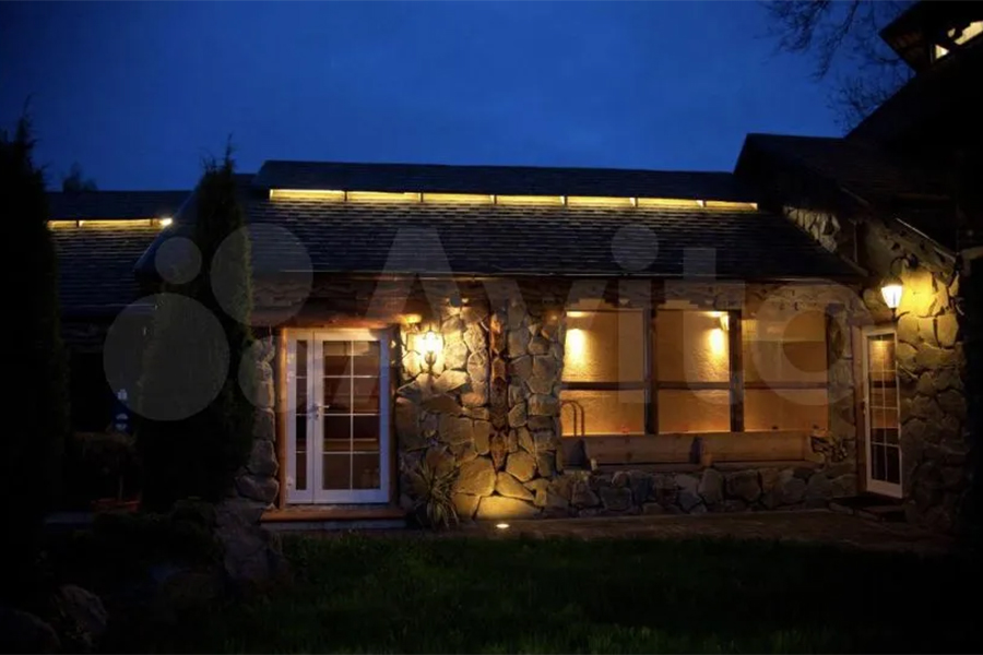 В 100 тысяч рублей обойдётся новогодняя ночь в шестикомнатном доме «Сосны, ели и залив» площадью 300 м² в посёлке Ладыгино Ладушкинского округа. Он, как подчёркивается в названии, расположен в сосновом лесу, на «первой линии у залива». Локация, по мнению автора объявления, подойдёт для любого мероприятия. Для этого в доме есть «всё необходимое», включая «самое главное — профессиональное караоке» на 10 тысяч песен с аппаратурой «как в ресторанах города» (впрочем, эта опция оплачивается отдельно). Также за отдельную плату предлагают воспользоваться «большим» бассейном с подогревом и подсветкой, в котором «можно купаться в любую погоду», и сауной с каминным залом. Входят в указанные 100 тысяч рублей настольный теннис, спортзал с тренажёрами, батут для детей на улице, мангал, казан и прочее. В доме четыре спальни и гостиная с кухней. Желающим отдохнуть компанией до 24 человек предлагается арендовать ещё один дом.