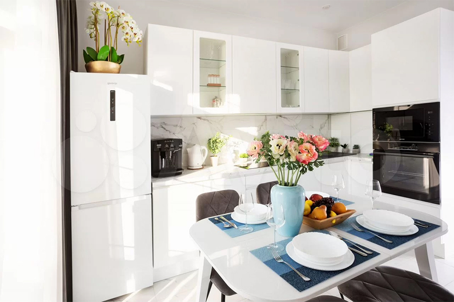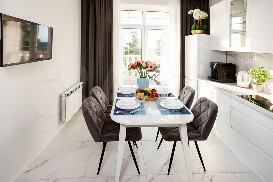 В распоряжении жильцов будут терраса, «оборудованная стильной уличной мебелью и профессиональным электронным грилем», панорамные окна с видом, «который будет вдохновлять вас каждый день», и «полноценная кухня», на которой вы найдёте «всё необходимые бытовые приборы», включая «современную кофемашину». Просыпаться «отдохнувшими и полными энергии» поможет кровать king size с ортопедическим матрасом. В общем, «каждый день будет наполнен гармонией, спокойствием и мечтами, которые становятся реальностью», уверяет автор объявления.