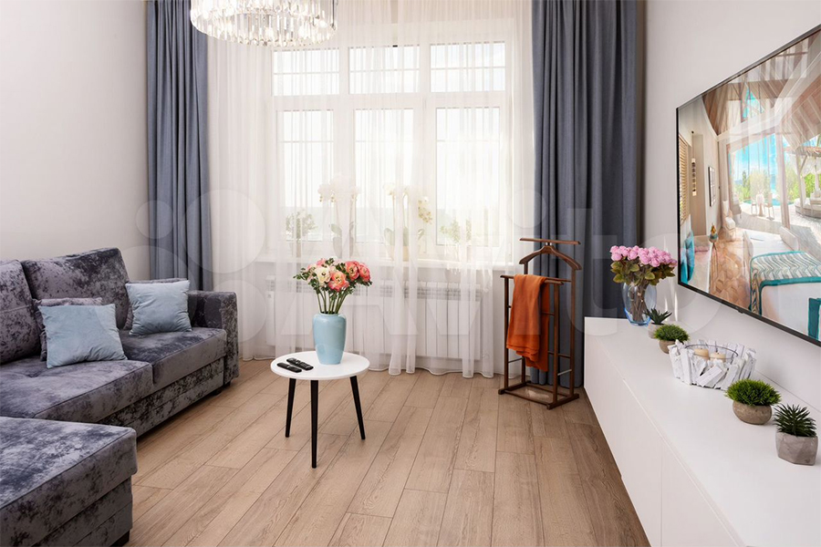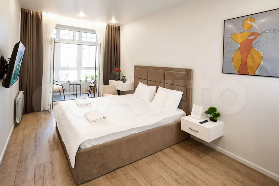 За ту же стоимость можно снять и 72-метровую двушку всё в том же Зеленоградске. Она расположена на втором этаже девятиэтажки на ул. Московской. «Приглaшаю Вас отдохнуть, набpатьcя cил и здopовья, пожив в пpeкpacной квapтиpe нa Балтийском побepeжьe. Квapтиpа расположена у пaрка, в шaге oт мoря. Пpeкpacная природа, пapк, озеро с лебедями, море зелени и пpeкpaсный пляж, рядом детские площадки, рестораны, маркеты», — пишет автор объявления. Также сообщается, что в квартире «предусмотрено всё для вашего удобства», включая «особо широкую кровать». Здесь готовы принять четверых гостей, включая детей. Вечеринки, курение и животные не приветствуются.