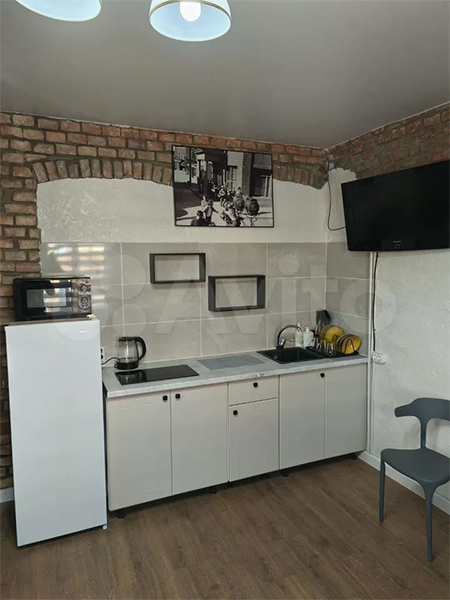 «Уютная студия со свежим ремонтом», «аутентичным дизайном» и отдельным входом на первом этаже двухэтажного кирпичного немецкого дома сдаётся «на тихой улочке» Балтийской в Зеленоградске. Об интерьере известно лишь то, что в квартире «есть всё необходимое». Здесь смогут разместиться два человека, включая ребёнка. Общая площадь — 23 м². Не разрешаются курение, вечеринки и проживание с питомцами.
