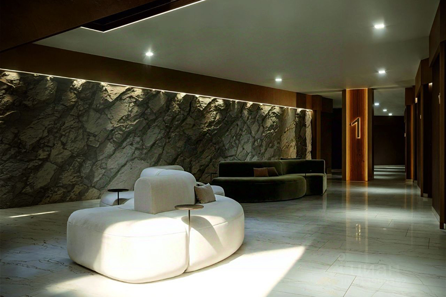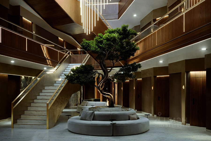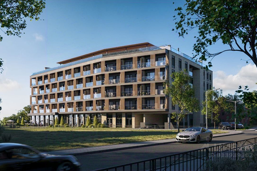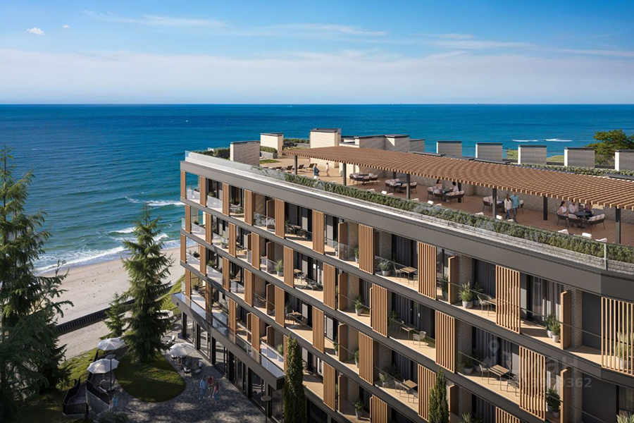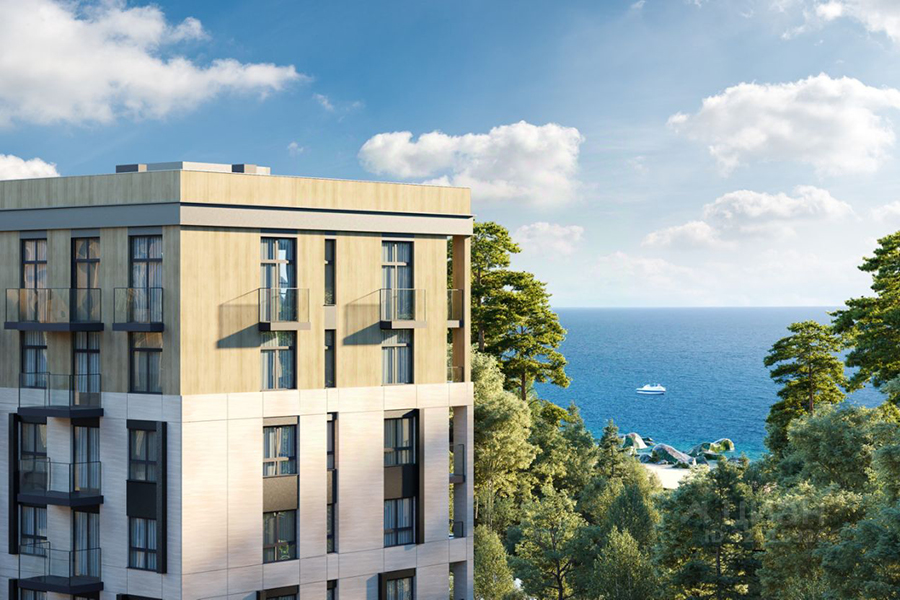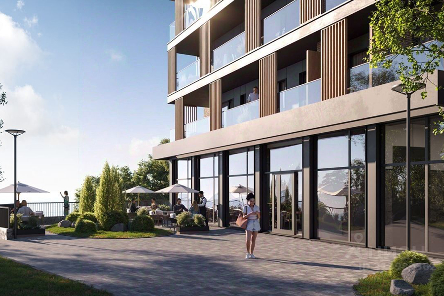 На второй строчке топа разместились однокомнатные апартаменты с отделкой площадью 25 м² на пятом этаже шестиэтажки, которую рассчитывают сдать в 2026 году. Отель расположен на первой береговой линии. Потенциальным покупателям обещают вид на море и всю необходимую инфраструктуру. В числе преимуществ проекта указаны эксплуатируемая кровля с зонами для отдыха, атриум, подземная парковка, два лифта (один опускается в подземный паркинг, второй — с панорамной кабиной — поднимается на кровлю), благоустроенный спуск к морю, кафе и ресторан на первом этаже с открытыми летними площадками, видеонаблюдение на всей территории комплекса, озеленение и ландшафтный дизайн, архитектурная подсветка фасадов, современная отделка входных групп и мест общего пользования, зона под ресепшн и собственная управляющая компания.
