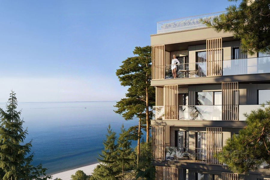 В ЖК «большая часть квартир будет иметь вид на бескрайнее Балтийское море», обещает автор объявления, не уточняя, относится ли к этому большинству указанный объект. Остальная информация также касается комплекса в целом: «В проекте предусмотрены квартиры с большими террасами, современная стильная архитектура, вентилируемые навесные фасады, стеклянное ограждение балконов, продуманное благоустройство с переменным сложным рельефом (террасное благоустройство на трёх уровнях), автономное — газовое отопление, современные продуманные эргономичные планировки». Также упоминаются кладовые в подвалах для хранения спортинвентаря, дизайнерская отделка мест общего пользования, огороженная территория земельного участка, умные домофоны, система видеонаблюдения, управление калитками и шлагбаумами со смартфона.
