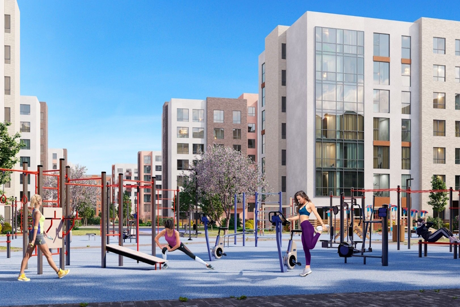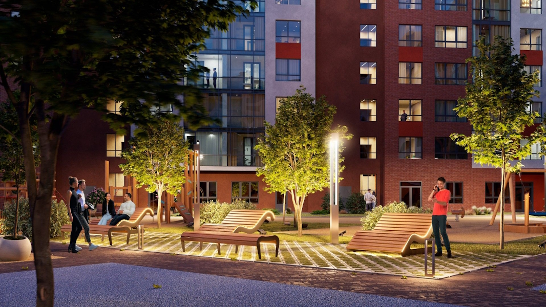 В подъездах обещают использовать «современные дизайнерские наработки с высококлассными материалами и цветовыми решениями». На территории — детская площадка с резиновым покрытием, парковочные места, озеленение, прогулочная зона.